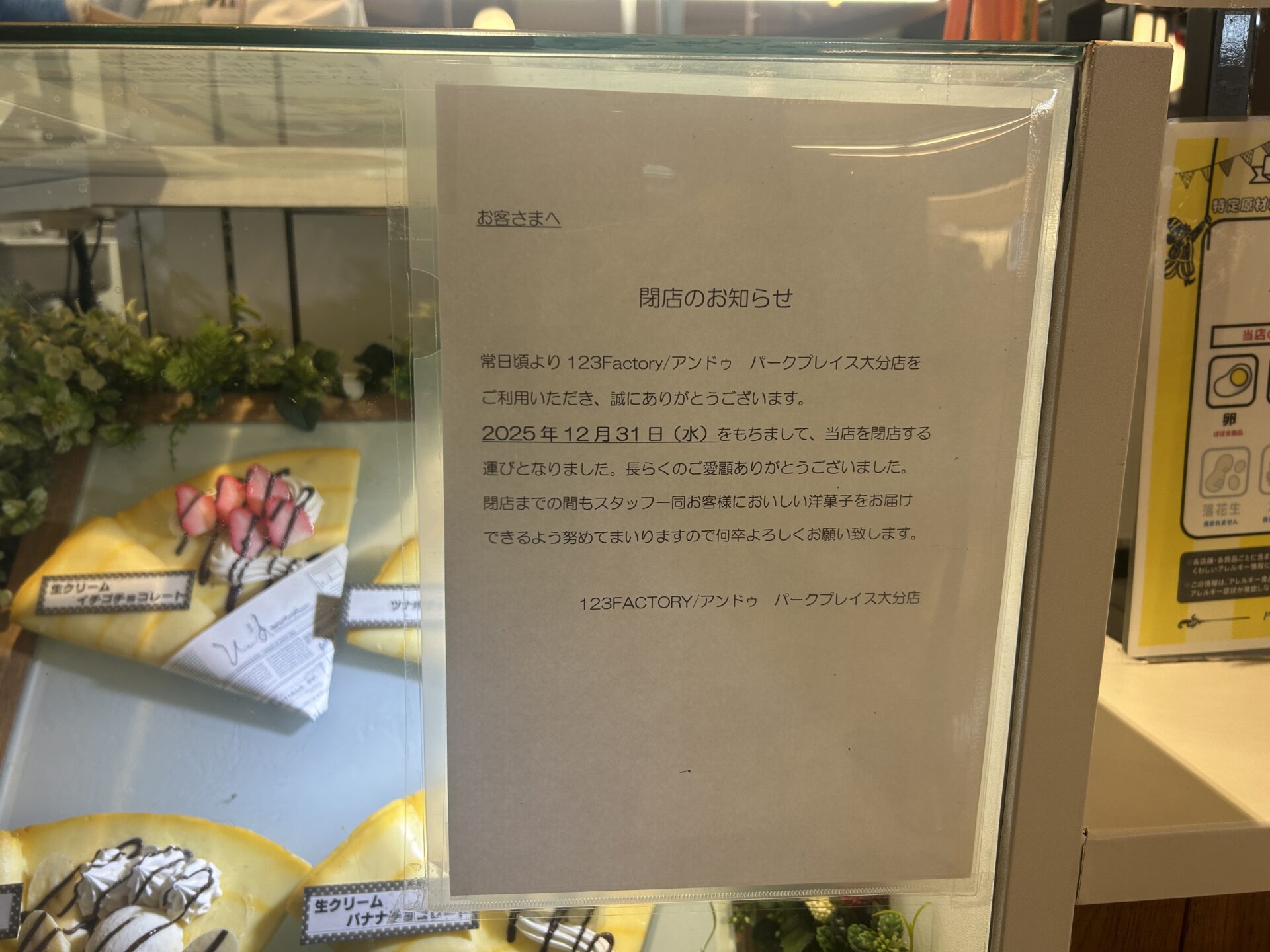 パークプレイス大分の『1.2.3 Factory / UN duex』が閉店するそうです。