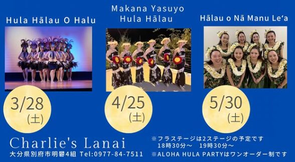 別府市明礬にあるハワイアンカフェ「チャーリーズラナイ」でのハワイアンイベント!