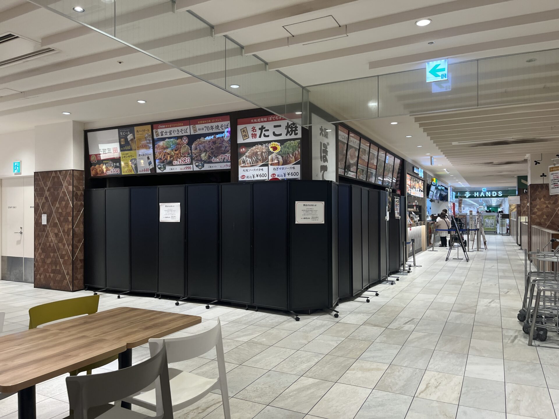 現在、フードコートで空いているのは『ぼてぢゅう 屋台』があった場所です。