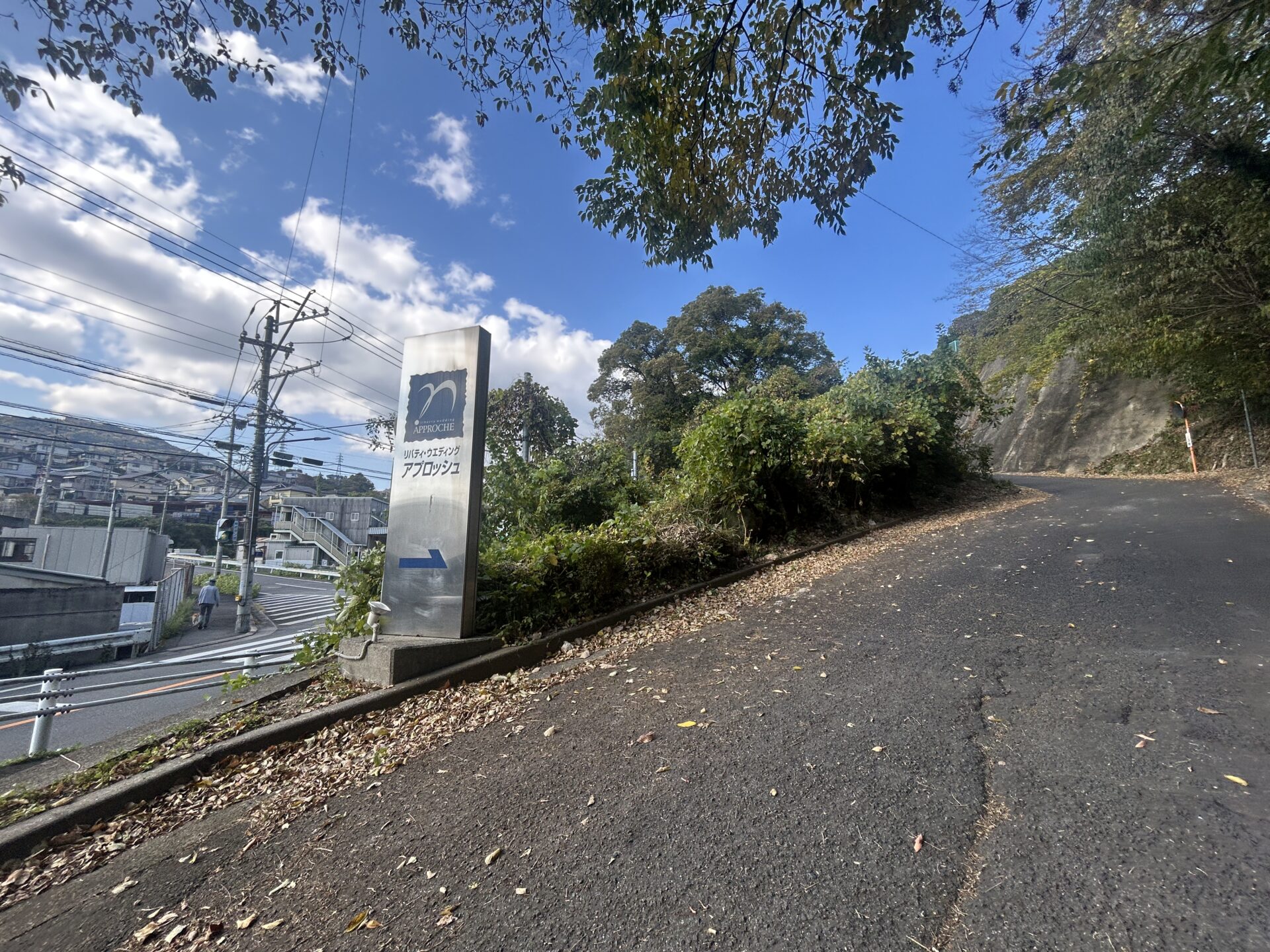 この看板を目印に坂を登っていくと『アプロッシュ』があります。