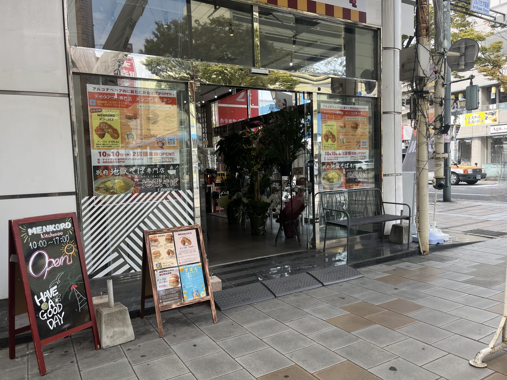 別府駅前通り、ソルパセオ銀座のアーケード入口にある、「まち歩きステーションARUCO・DE・BEPPU(アルコデベップ)」内に昼は『メンコロキッチン』、夜は『別府地獄そば専門店』のお店がオープンしたようです。