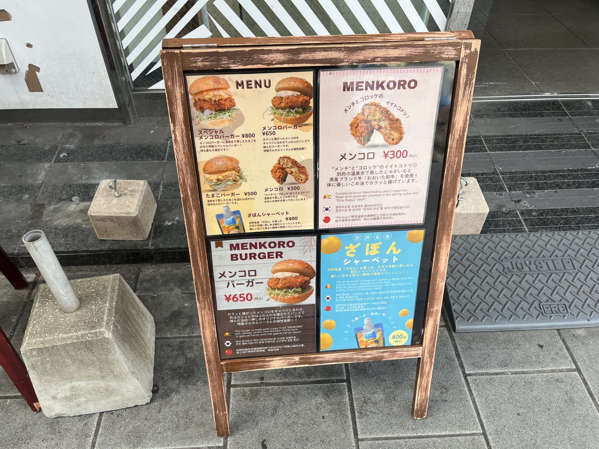 『メンコロキッチン』はピンクの作務衣で別府観光ガイドをされてる「別府の一休さん」でお馴染み花田 潤也さんのお店です。以前からキッチンカーで営業されていました。