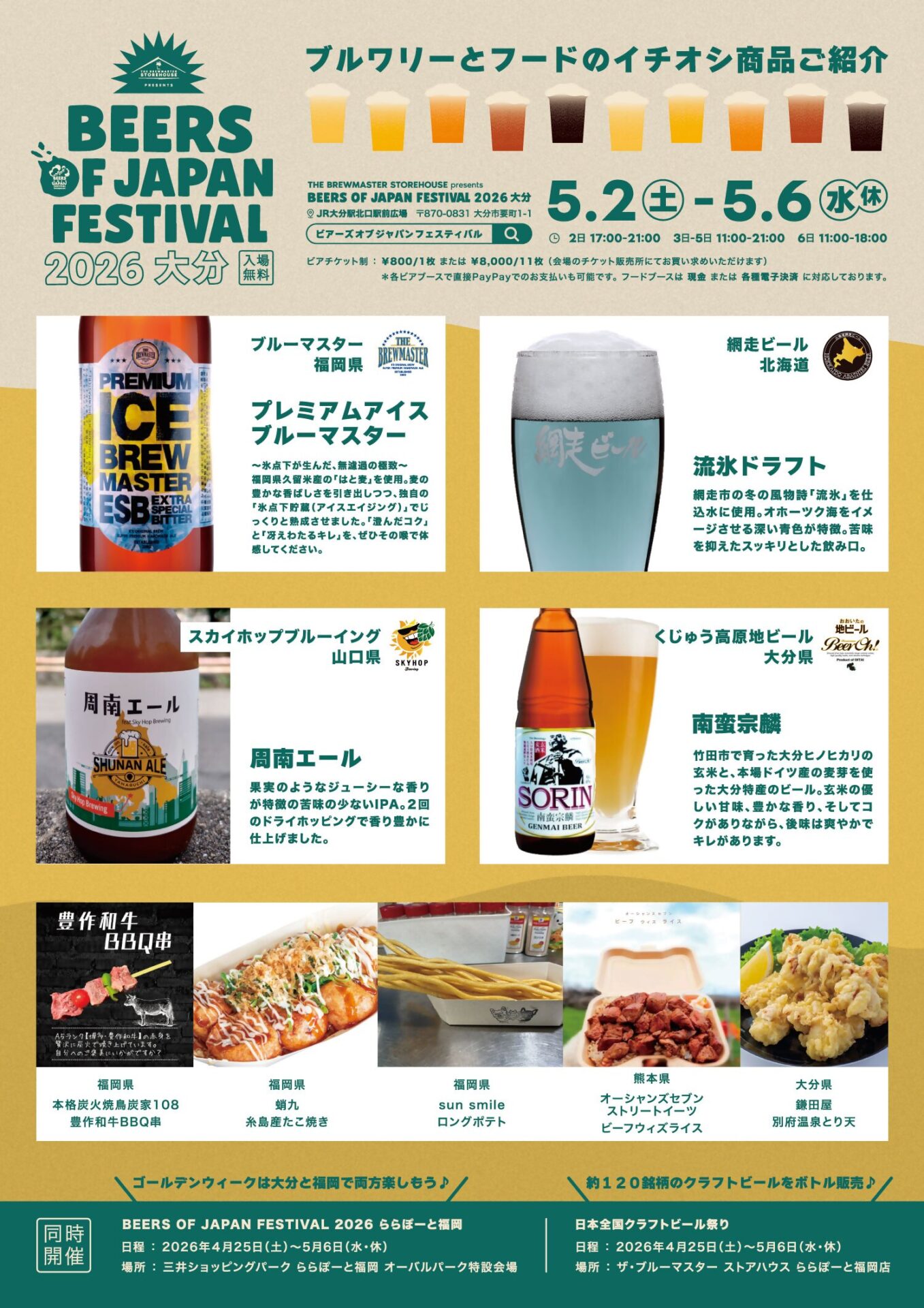 大分駅前で『BEERS OF JAPAN FESTIVAL 2026 大分』が開催されます。