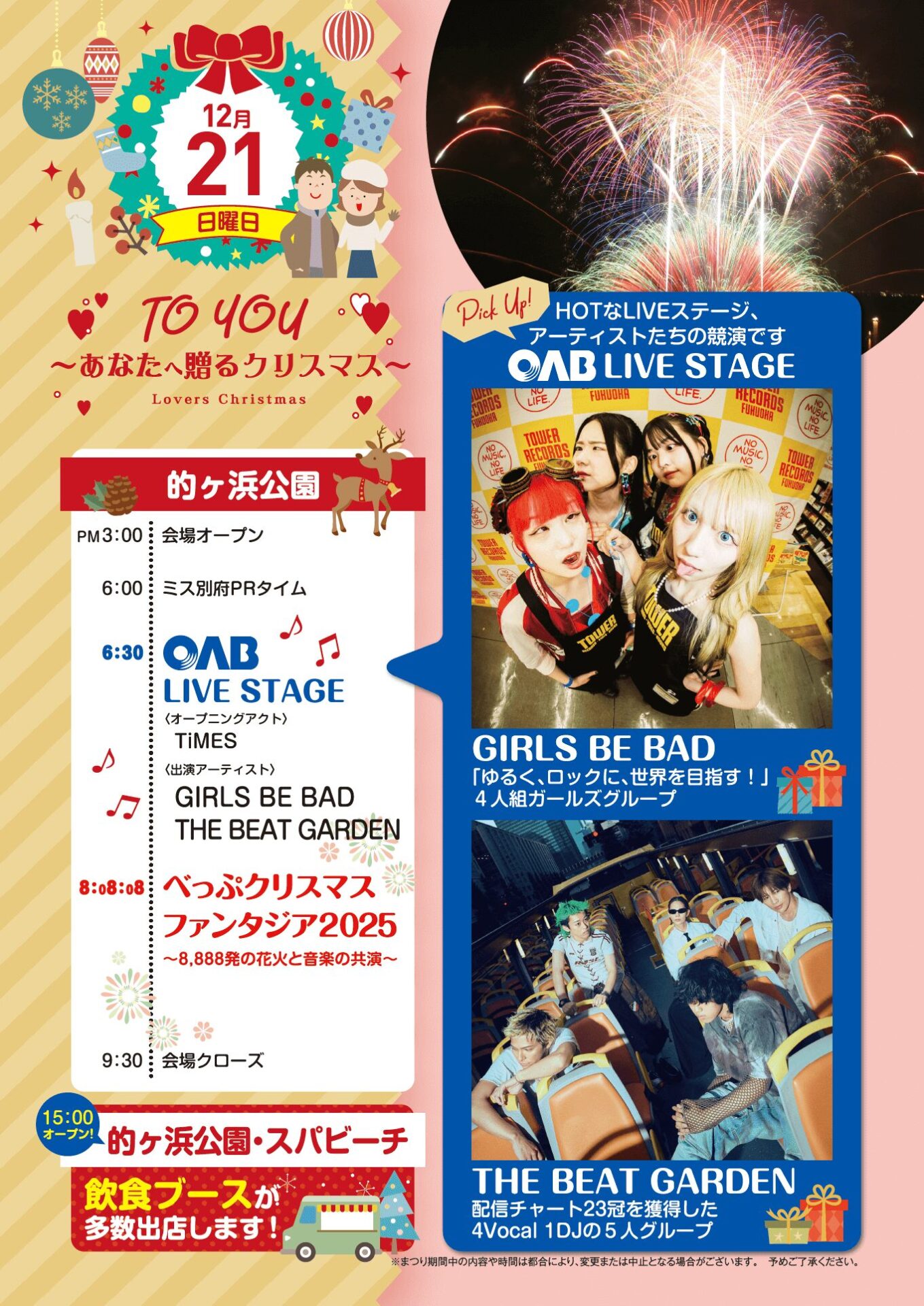 音楽と花火の共演『☆べっぷクリスマスファンタジア2025☆』が開催されます。