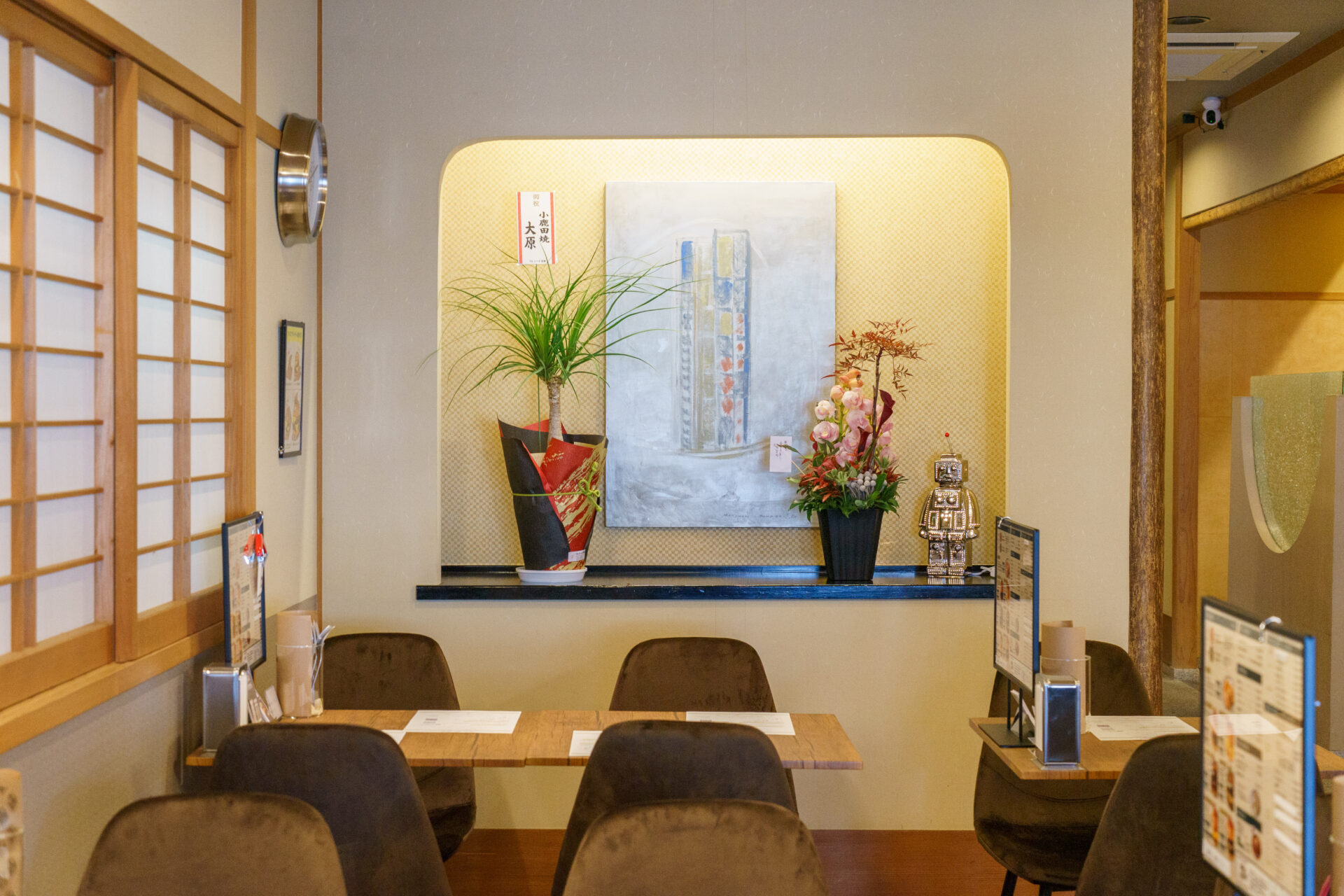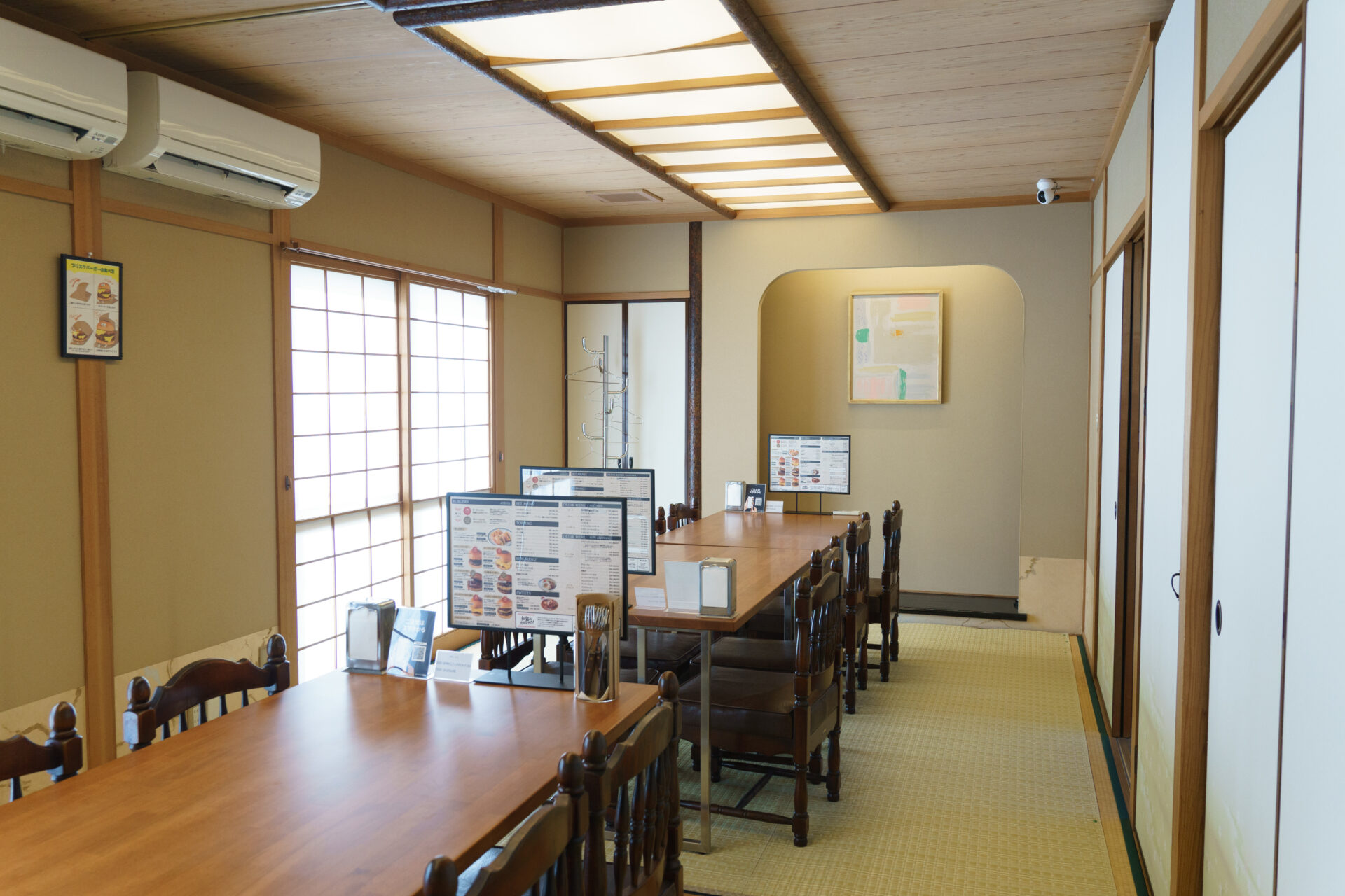 ハンバーガー店とは思えない和モダンな雰囲気の店内は、入ってすぐのところにテーブル席、進むと個室・カウンター、団体向けのお部屋があります。