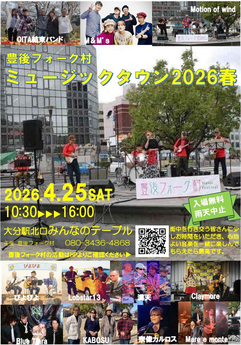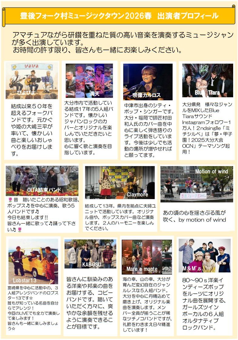 『豊後フォーク村ミュージックタウン2026春』が開催されます。