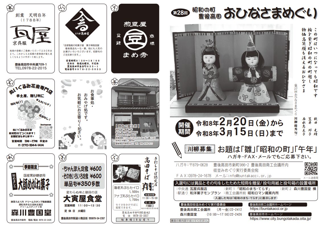 川柳の募集もあり『第28回 昭和の町 豊後高田おひなさまめぐり』が開催中です。