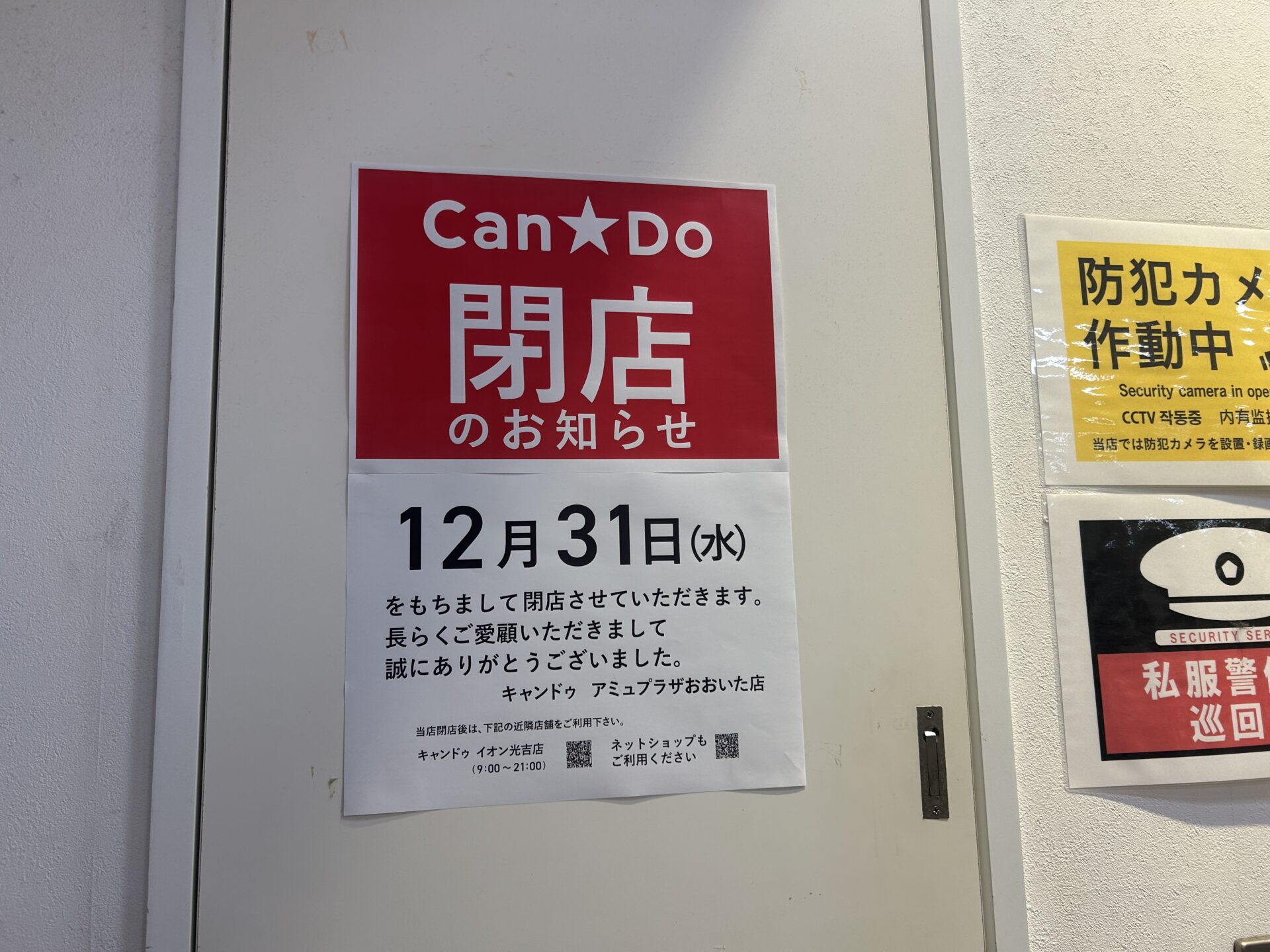 『Can★Do アミュプラザおおいた店』が閉店するそうです。