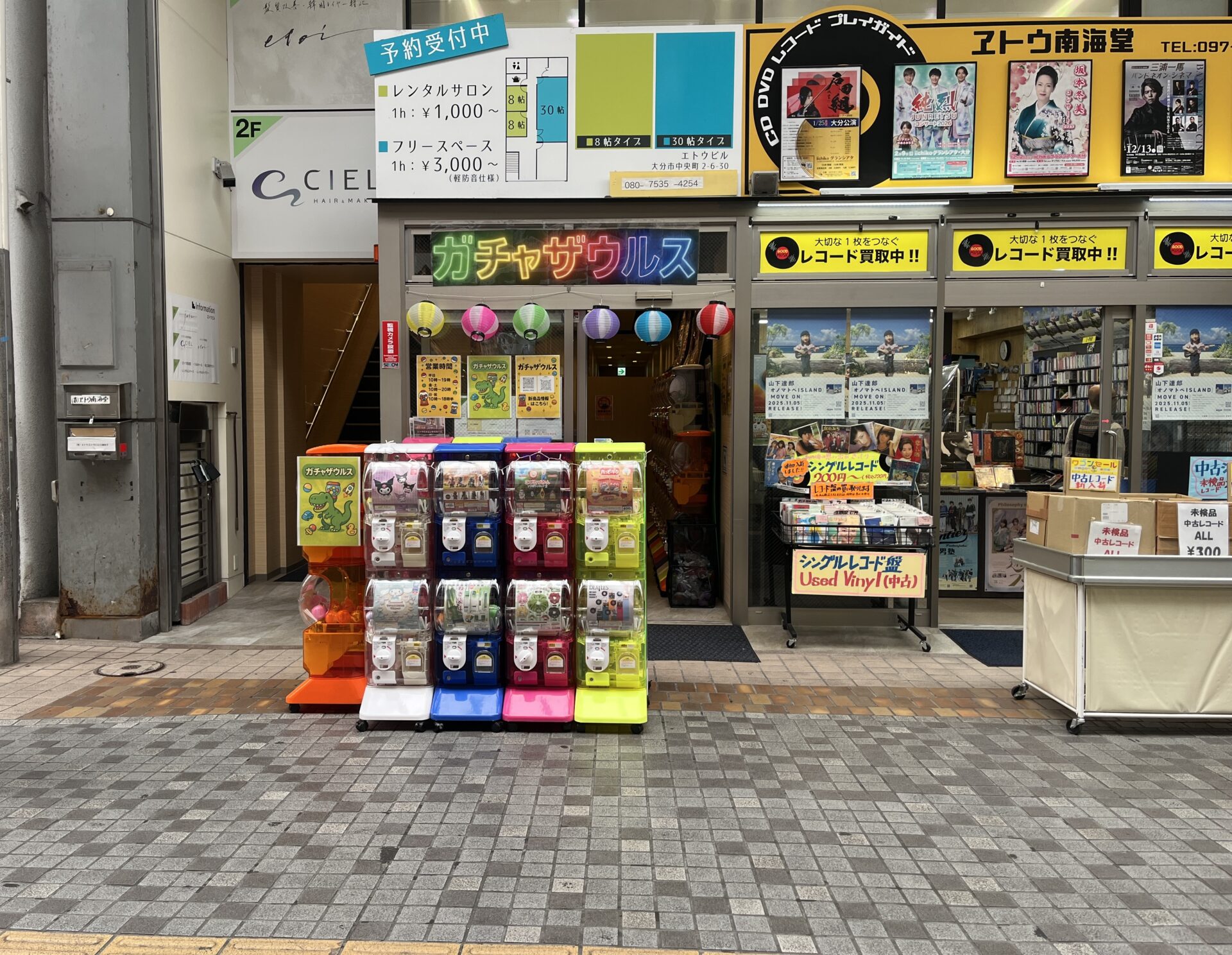 大分市中央町の商店街にカプセルトイのお店『ガチャザウルス』ができていました。