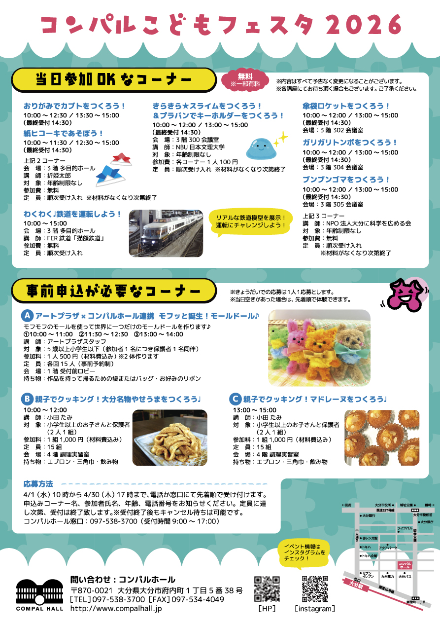 わくわく体験がいっぱい!『コンパルこどもフェスタ2026』が開催されます。