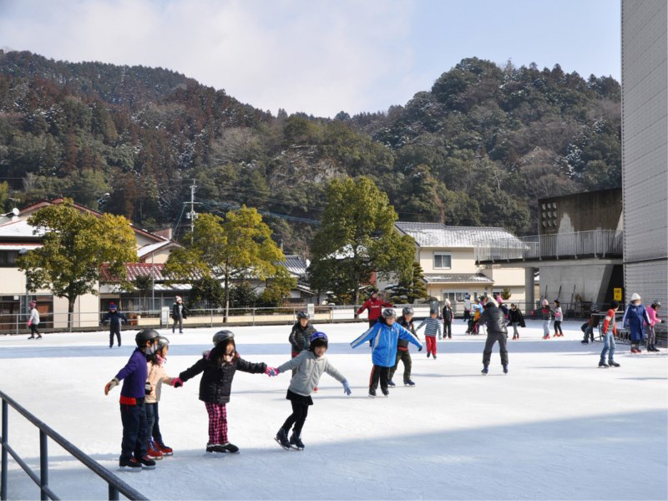 豊かな自然に囲まれた 複合施設内のスケートリンクは、屋外ならではの爽快感が魅力。