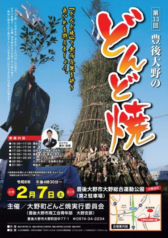 無病息災を祈る『第33回 豊後大野のどんど焼』が 開催されます。