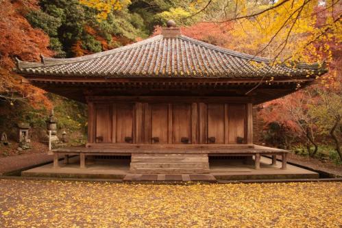 国宝富貴寺大堂と紅葉がライトに照らされ、幻想的な空間が広がります。