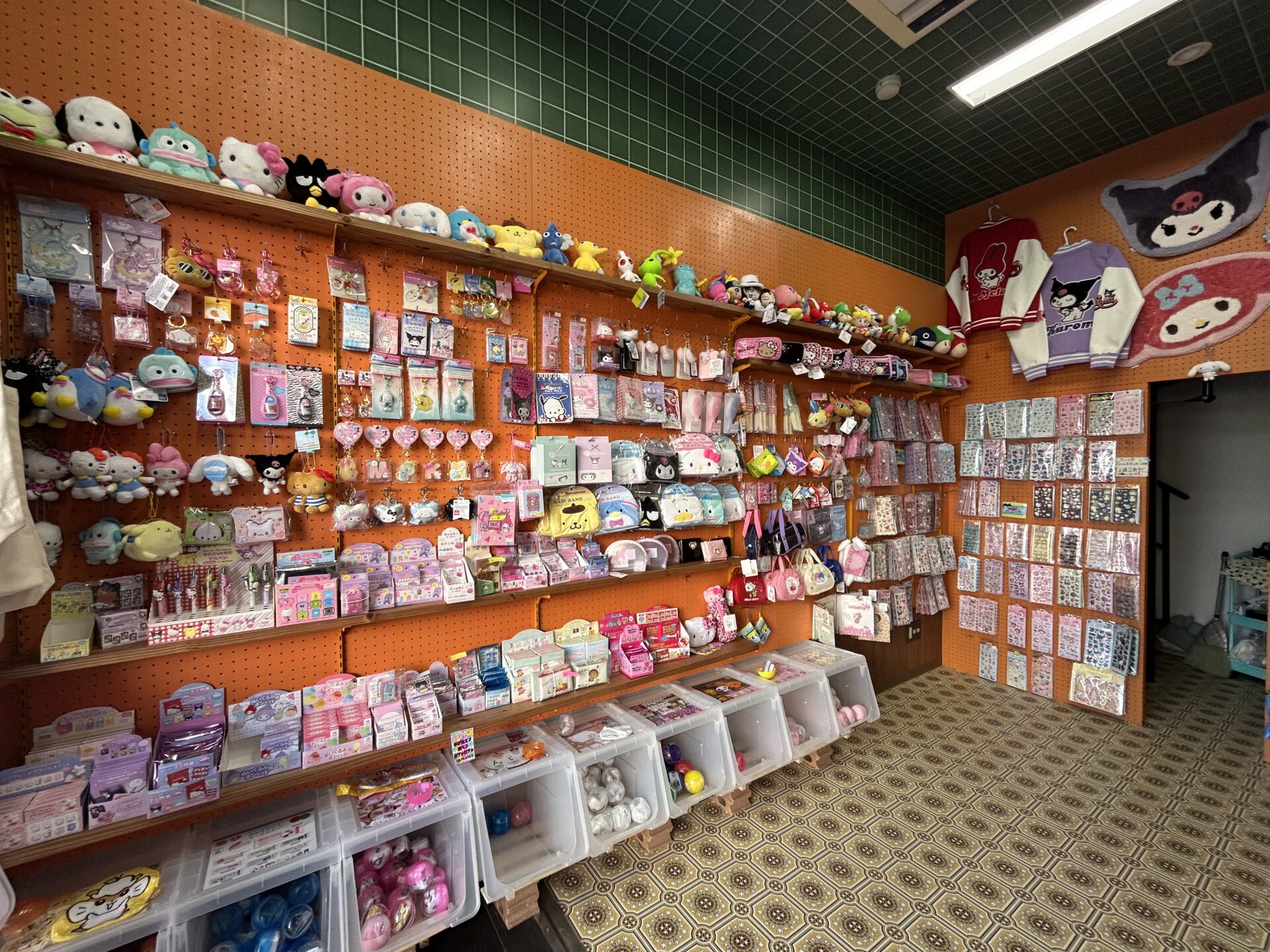 店内にはサンリオキャラクターなどの雑貨がずらりと並んでいます!