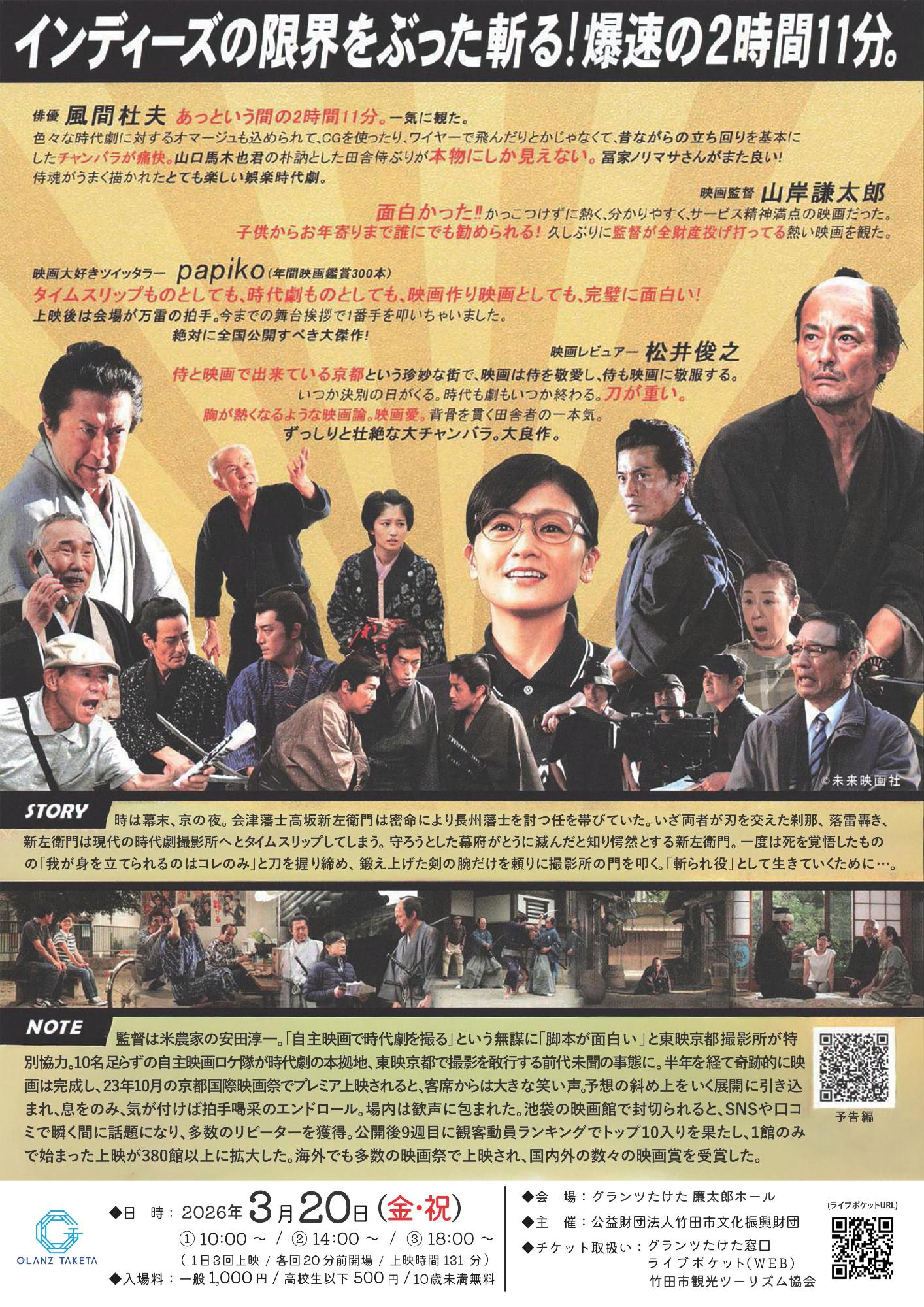 グランツ映画館 “玉洗劇場”『侍タイムスリッパー上映&トークショー』が開催されます。