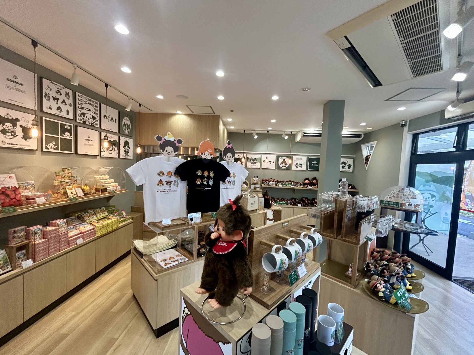 店舗左手がカフェ、右手に「モンチッチ」のショップがあります。