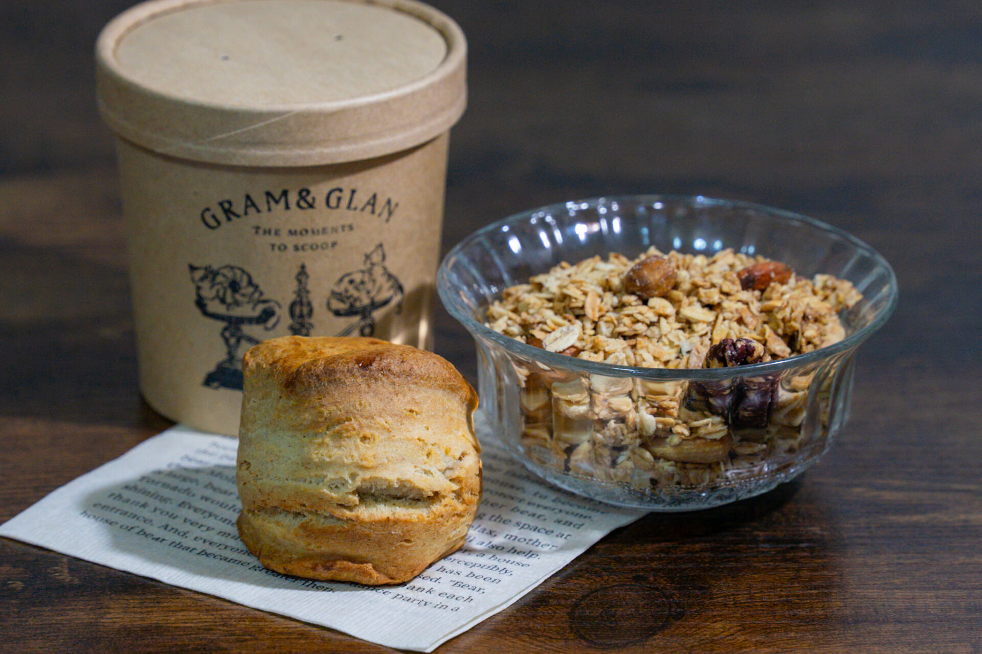 今回は『グラノーラ 木の実の贈り物』(1g7円)と『スコーン/プレーン』(300円)をいただきました。