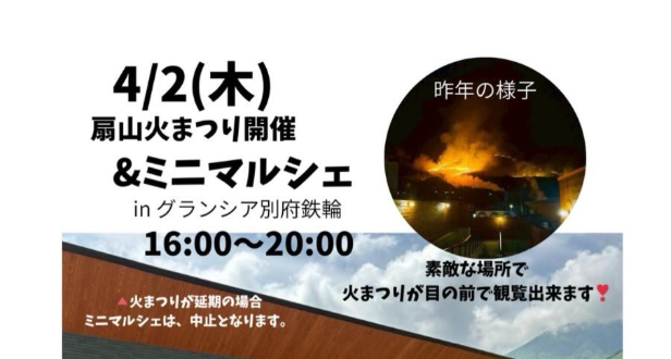 グランシア別府鉄輪で『扇山火祭りを見ながら楽しめるマルシェ』が開催されます。