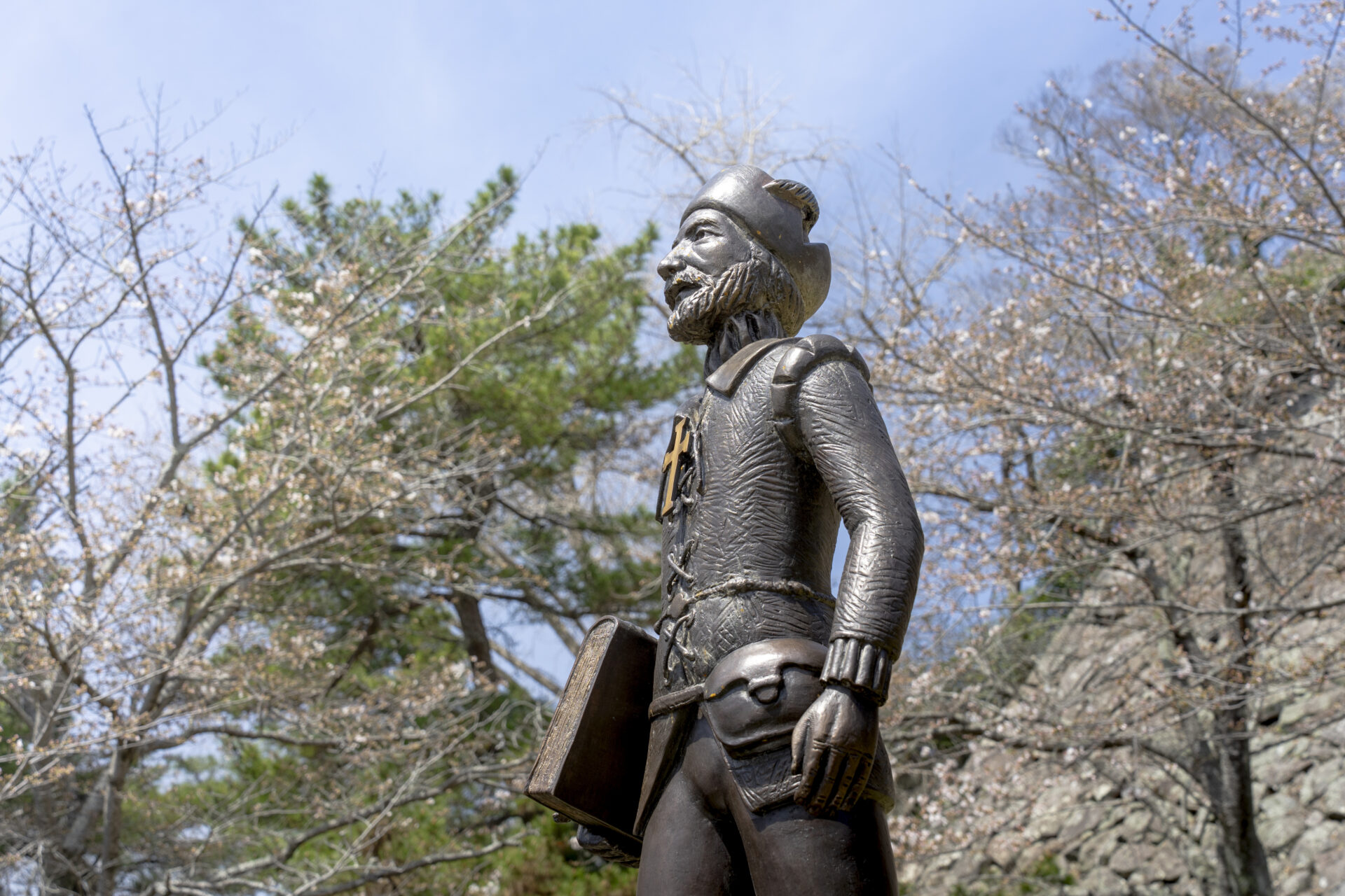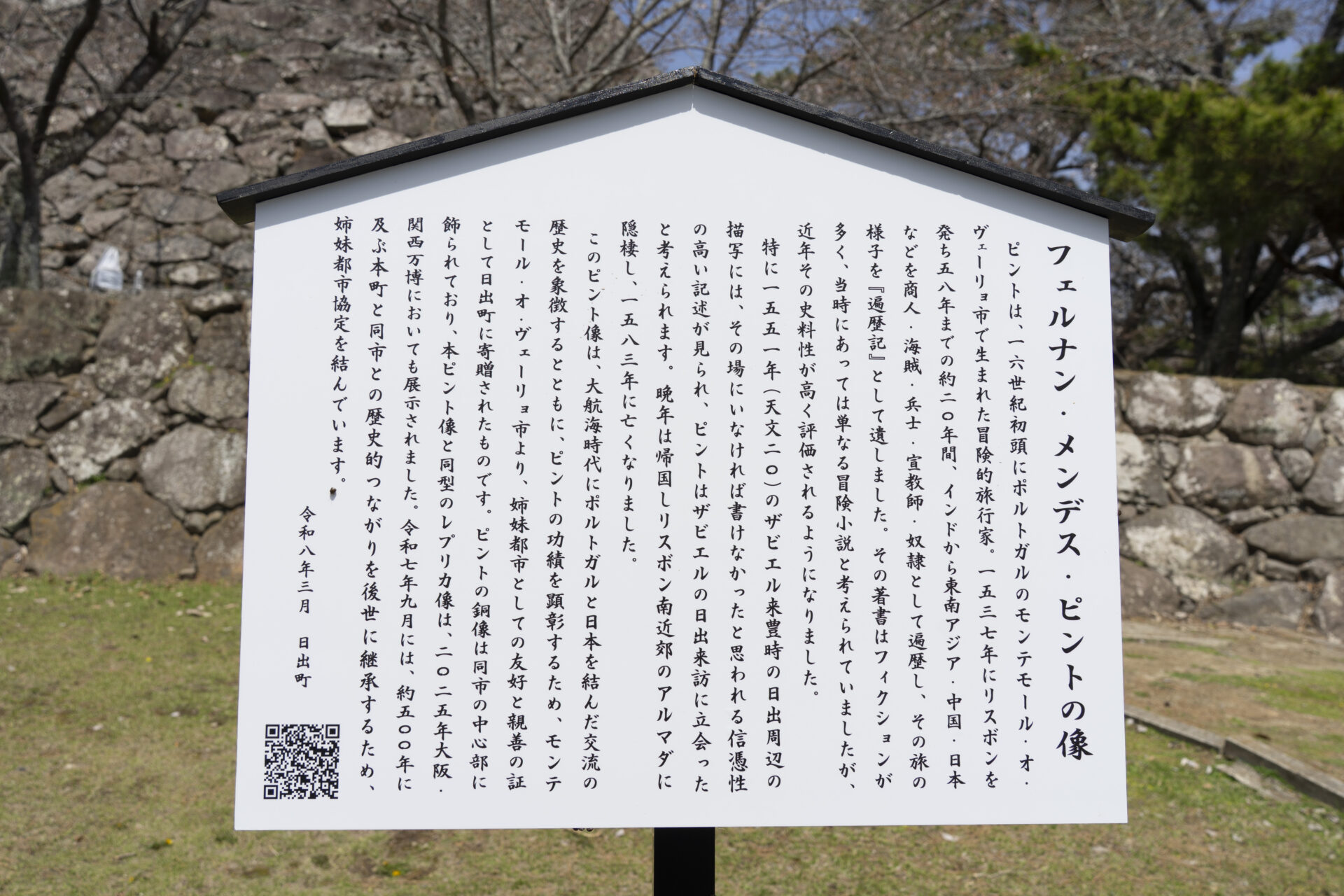 日出町の桜の名所『城下公園』に新たにポルトガルの旅行家・ピント銅像が設置されたということで実際に行ってきました!