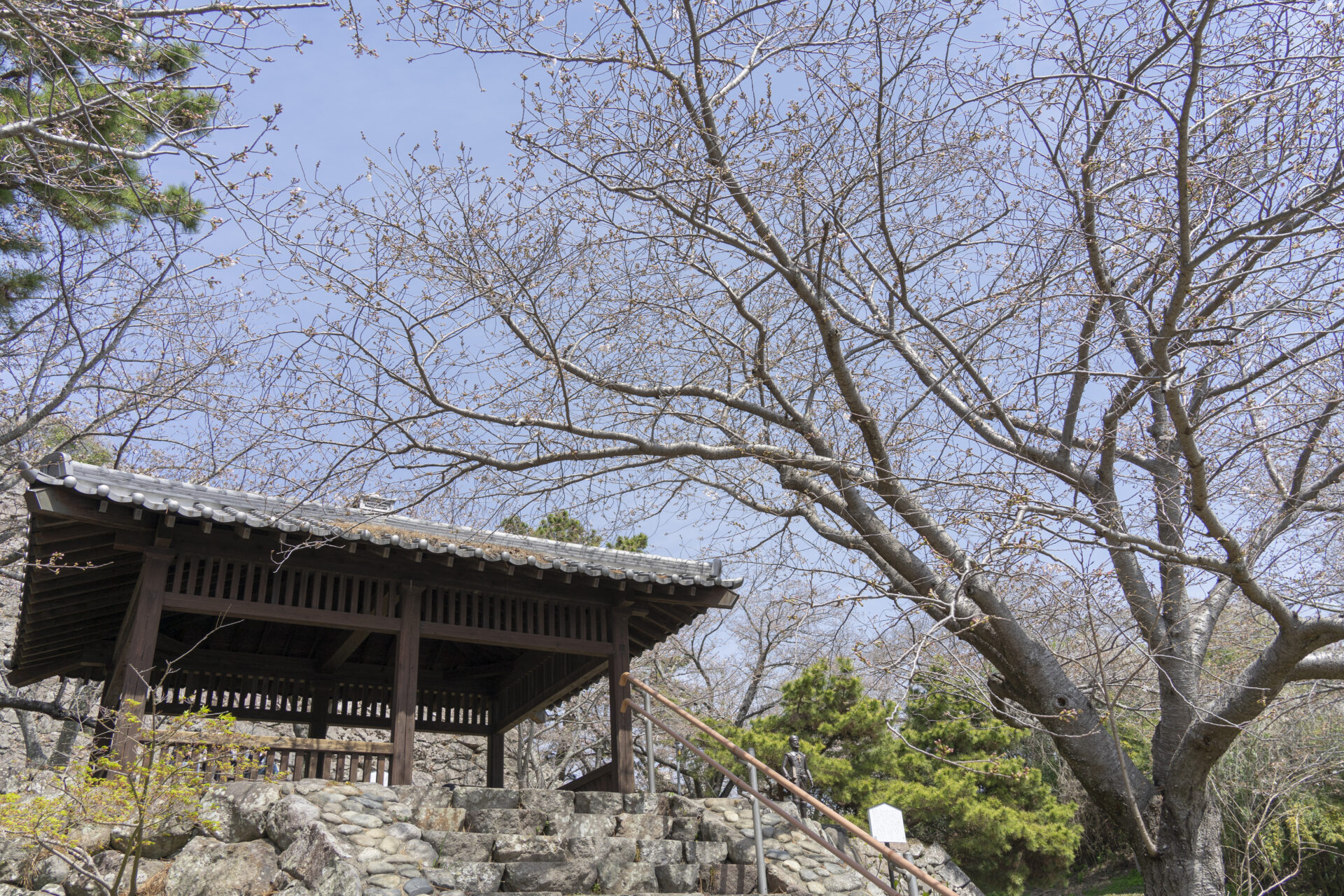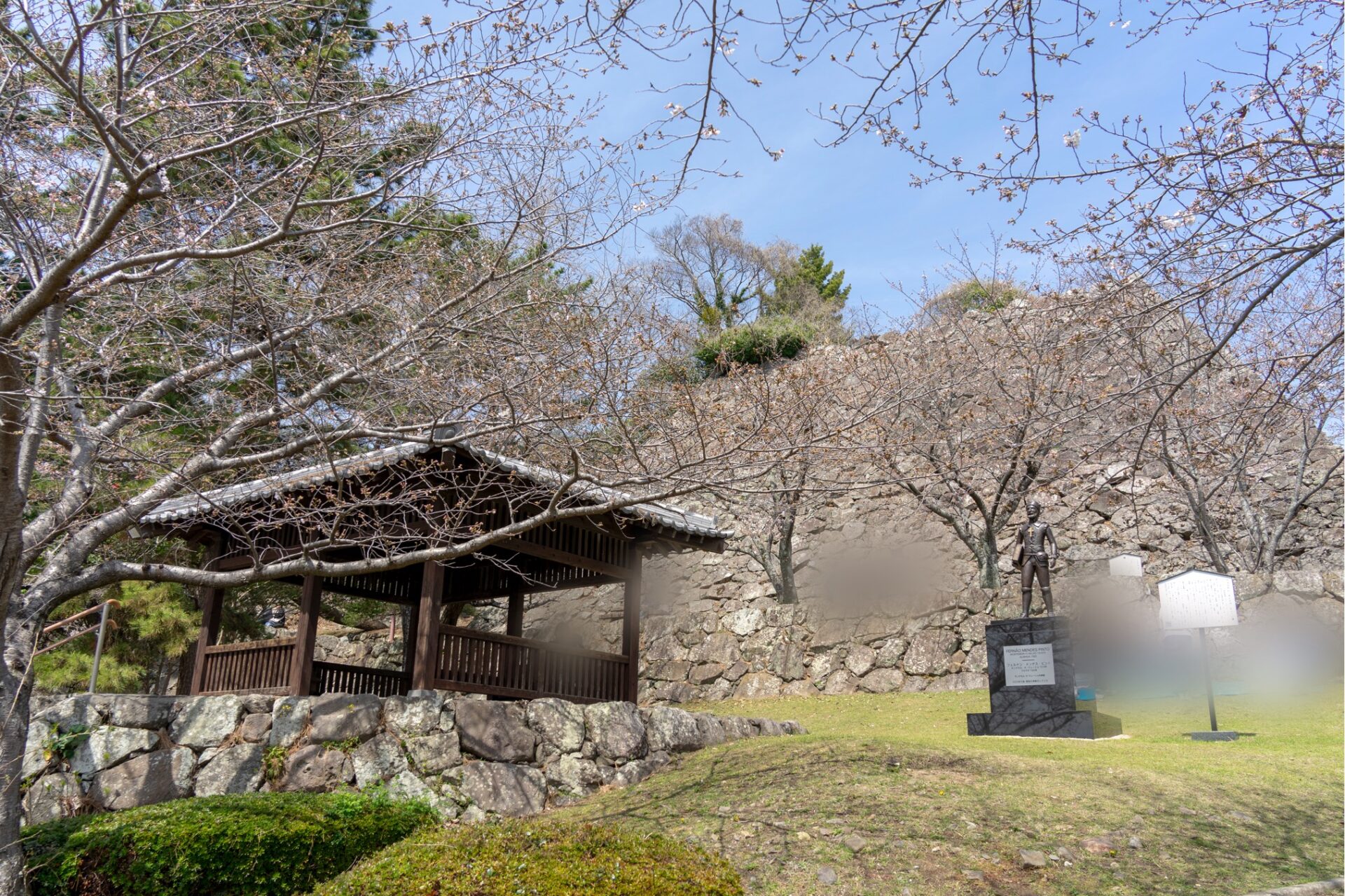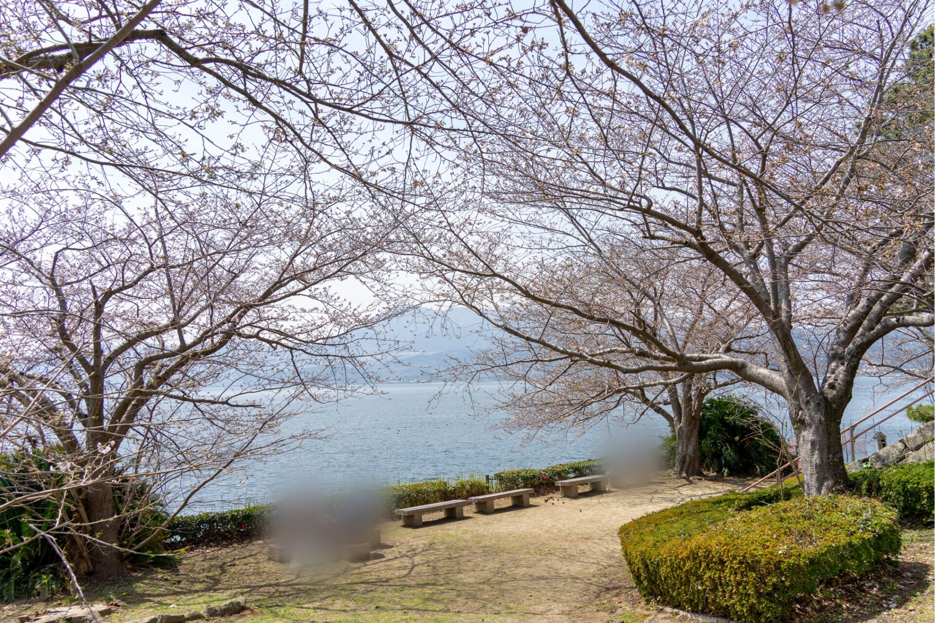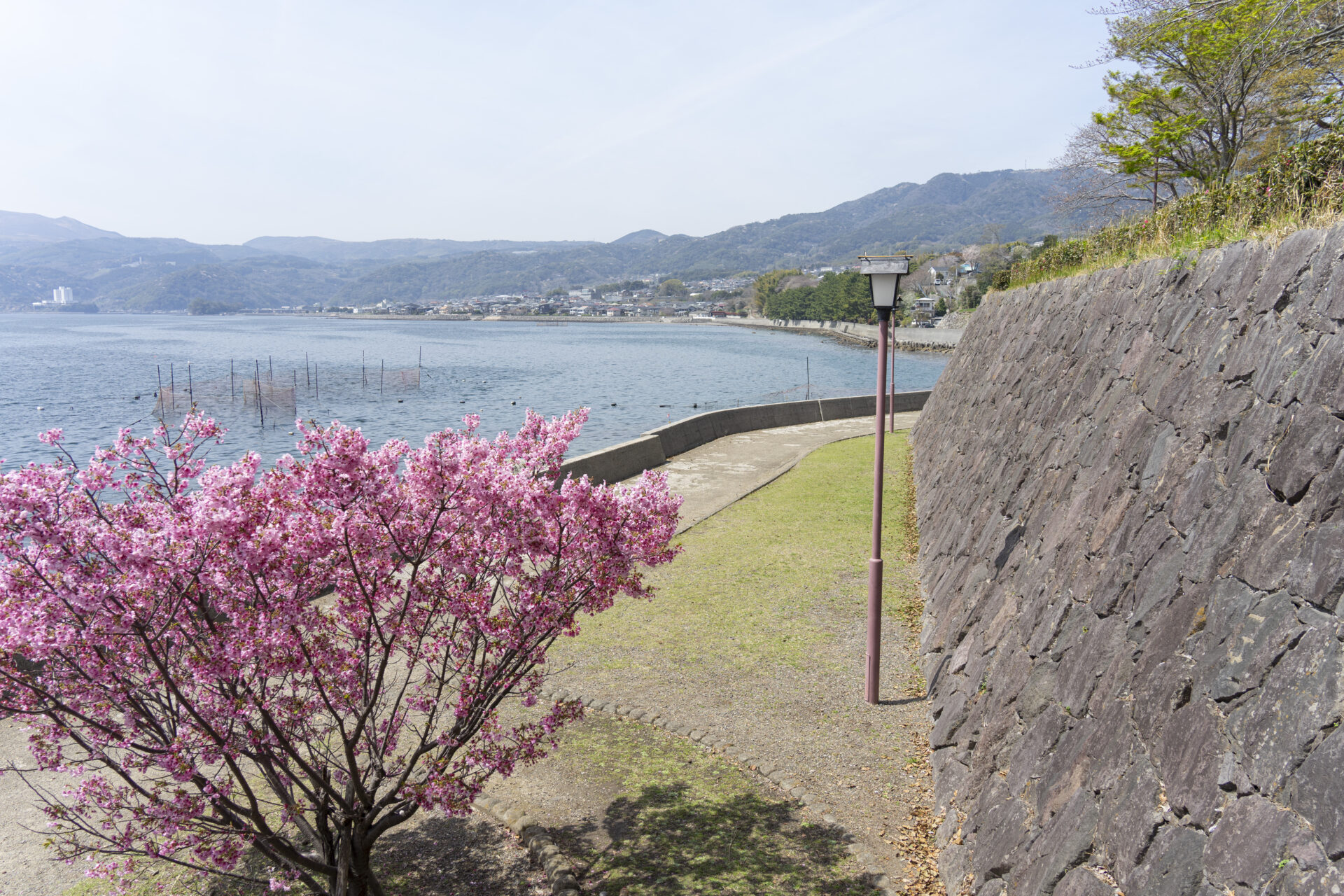 園内には約100本の桜の木が植えられており、日出城址の石垣と別府湾を見渡すロケーションがとても綺麗な場所です。