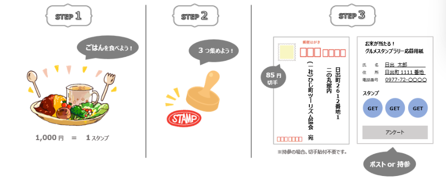 異なる店舗のスタンプ3個を集め、応募用紙に必要事項を記入