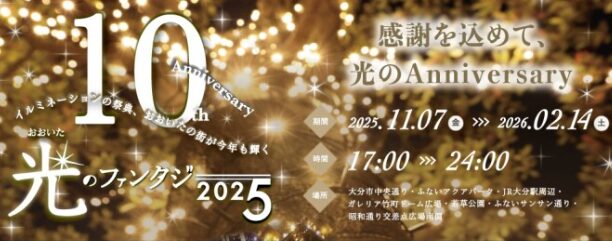 点灯式は11/7(金)!『おおいた光のファンタジー2025~感謝を込めて、光のAnniversary~』が開催されます。