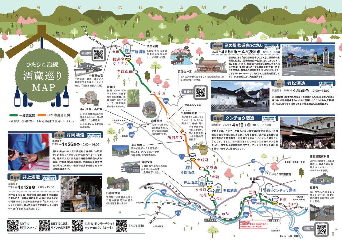 各週日曜日のリレー開催!福岡・大分両県をつなぐBRT日田彦山線「ひこぼしライン」に乗って、4つの酒蔵+道の駅を巡ろう!