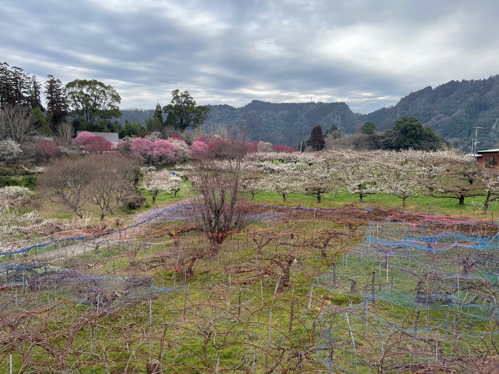 今年で46回目を迎える梅まつり。見頃には山全体が白や淡いピンク色に染まります。
