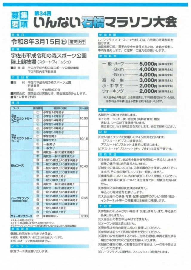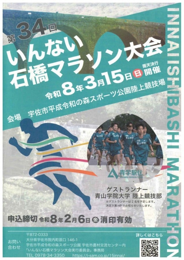 ゲストランナーは「青山学院大学 陸上競技部」『第34回 いんない石橋マラソン大会』の参加者を募集しています。