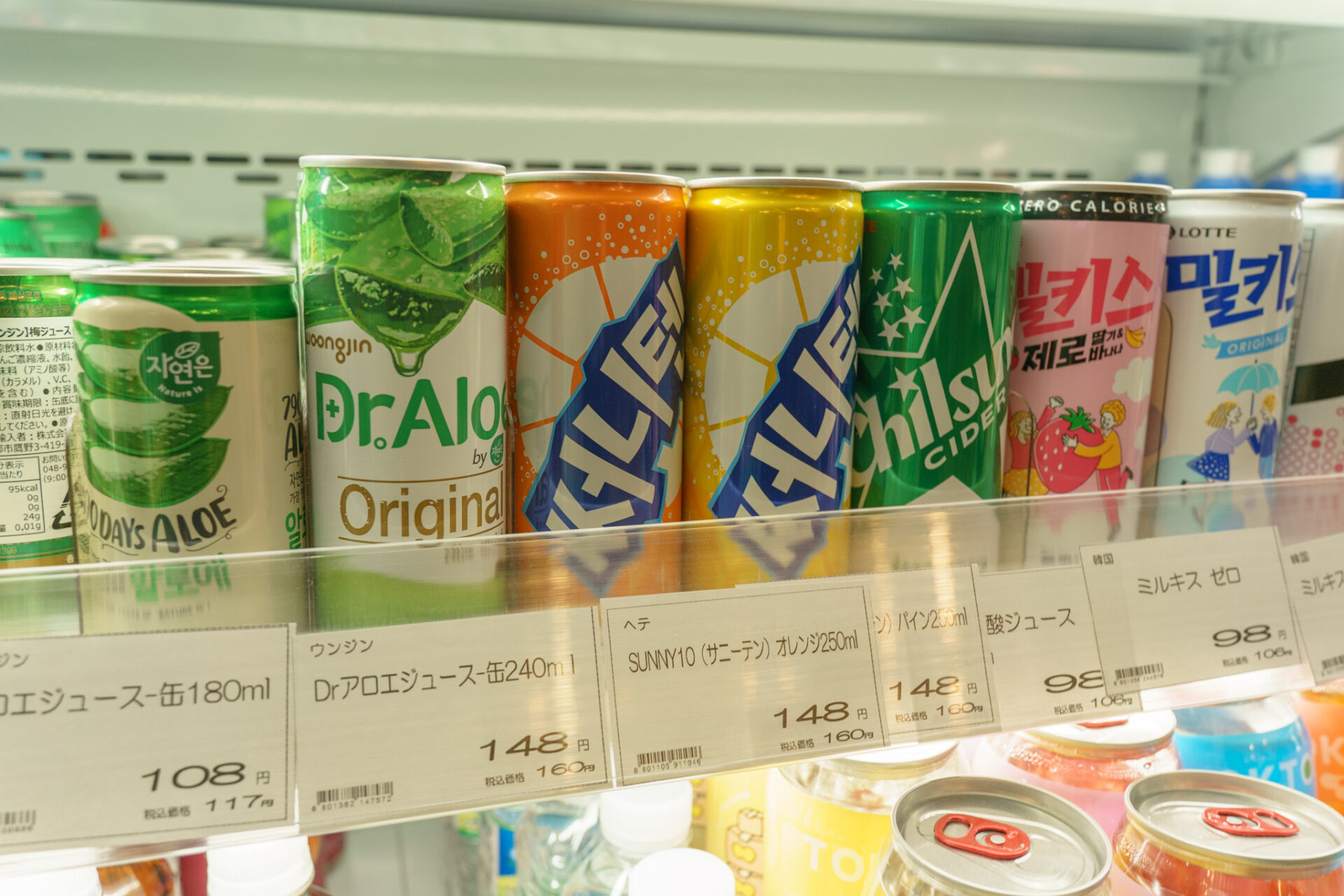 韓国では定番のパウチドリンクをはじめ、可愛いパッケージのドリンクや韓国で長年愛されている定番ドリンク「サニーテン」も。