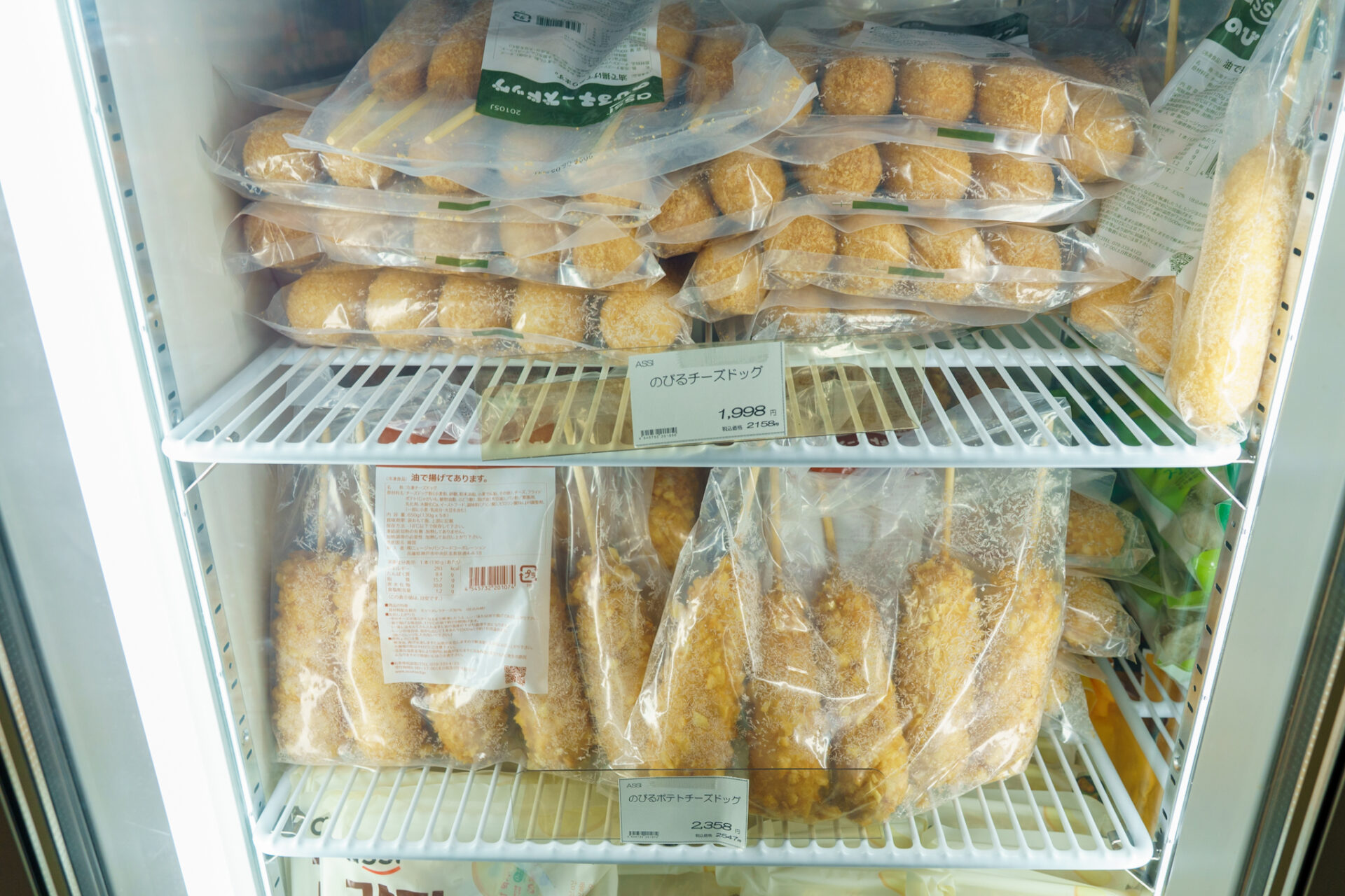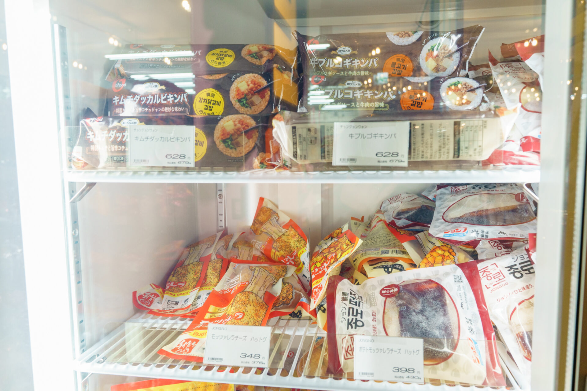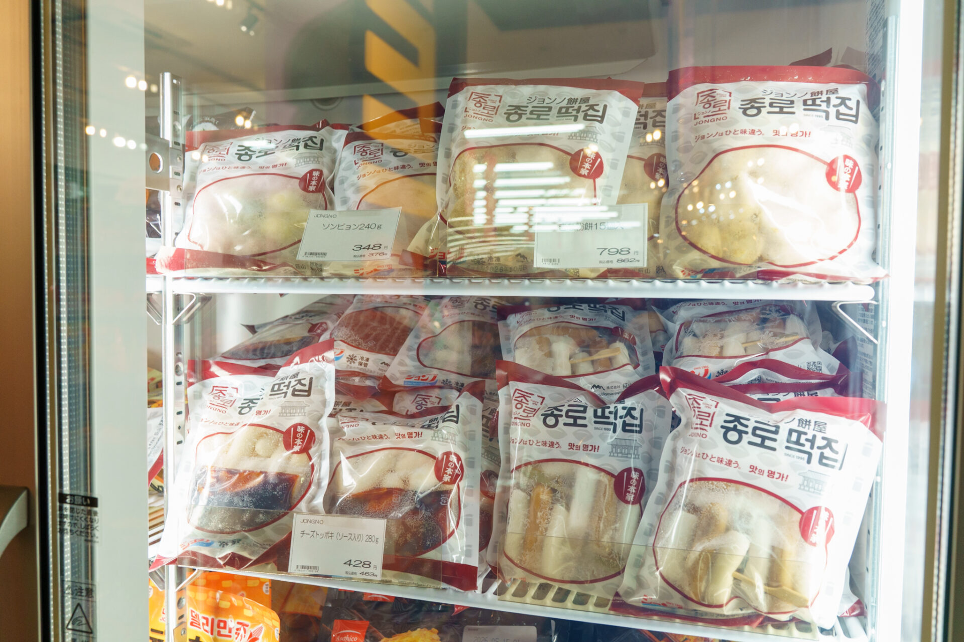 冷凍の商品には、キンパやハットグ、トッポギなどがありました。