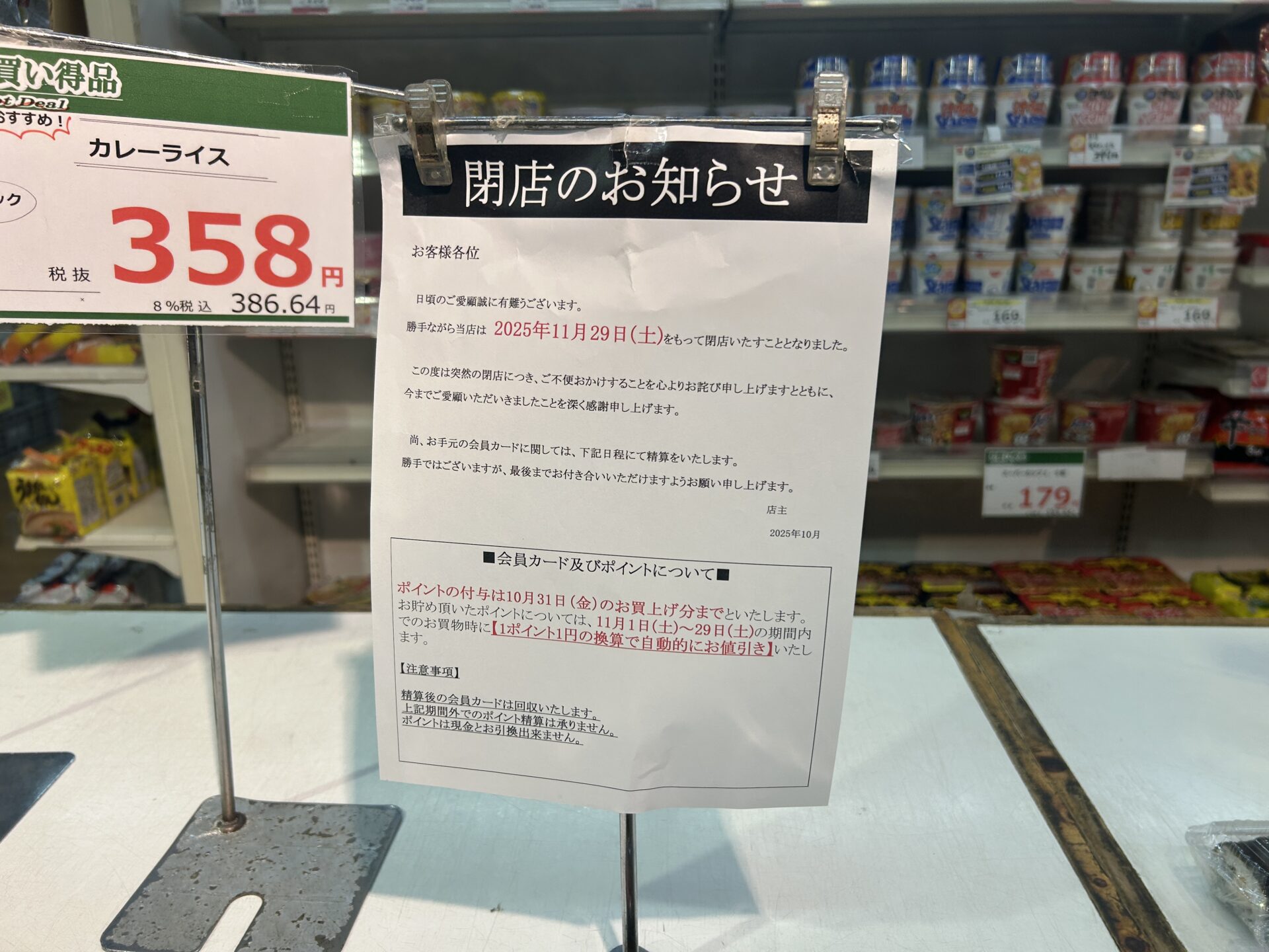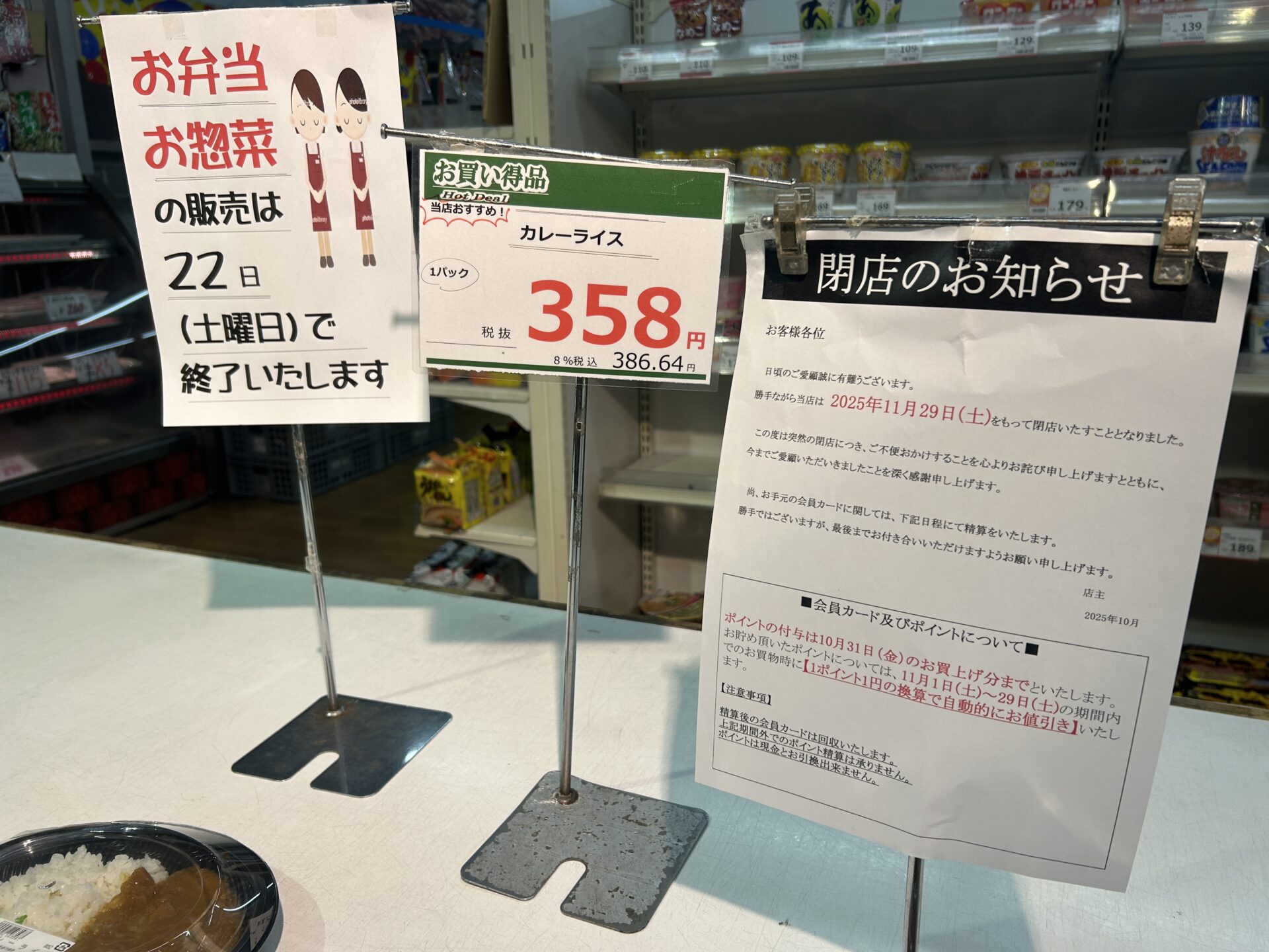 お知らせによると、閉店は2025年11月29日(土)で、お惣菜・お弁当の販売は22日(土)で終了だそうです。