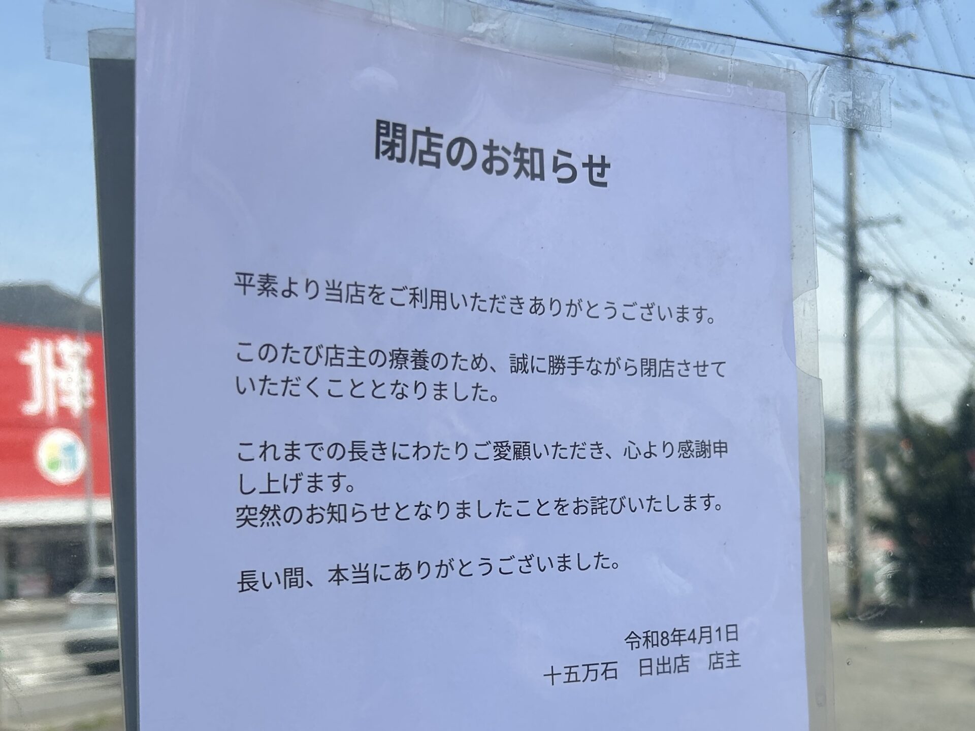 店頭に閉店のお知らせが掲示されていました。