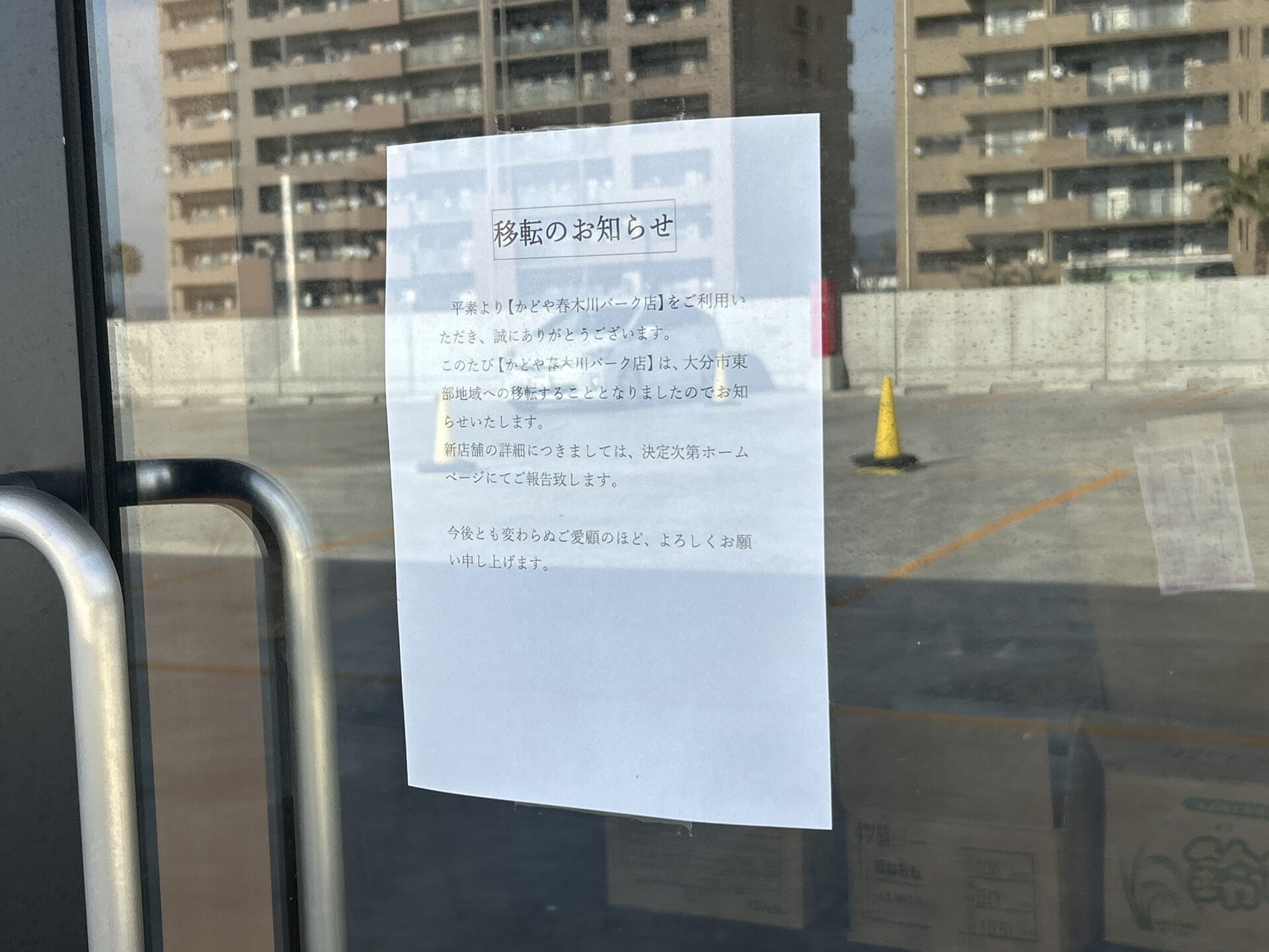 掲示されていたお知らせによると、大分市東部へ移転するとのことです。