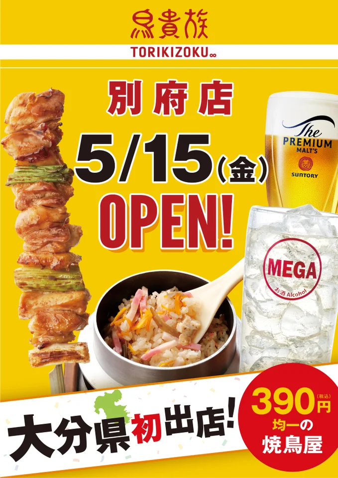 【5月15日開店】鳥貴族 別府店