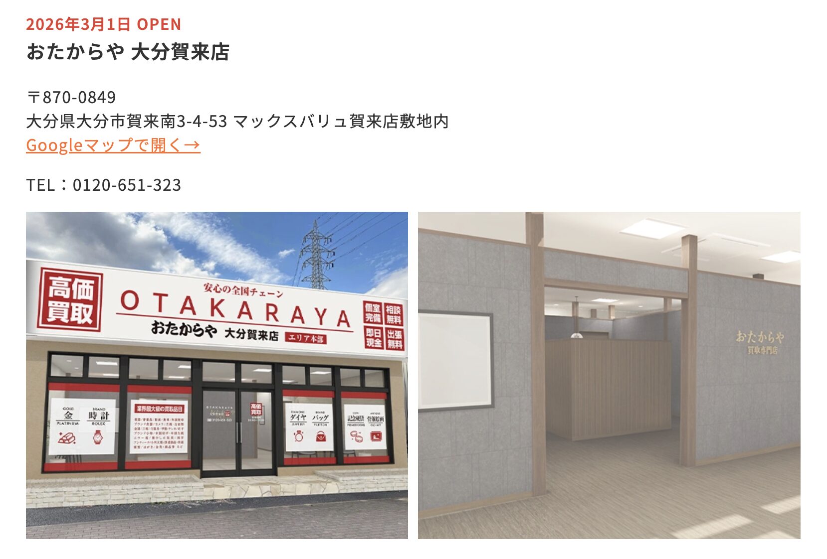 大分市のマックスバリュ賀来店横に『高価買取 おたからや』ができるようです。