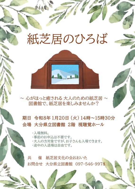 “心が癒される 大人の為の紙芝居” 大分県立図書館で『紙芝居のひろば』が開催されます。