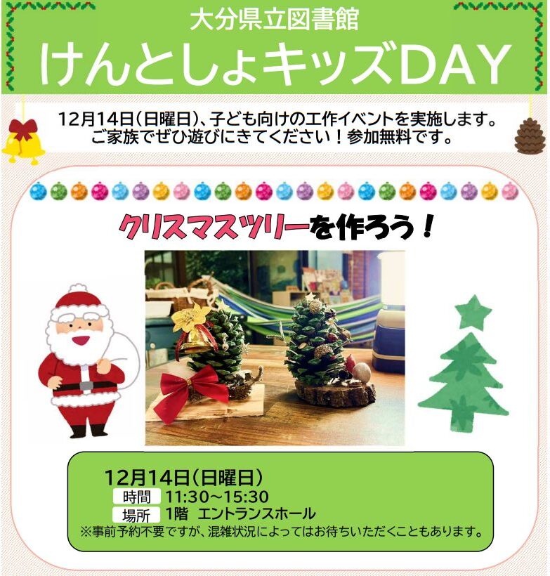 事前申込不要『けんとしょキッズDAY~クリスマスツリーをつくろう!』に参加しませんか?