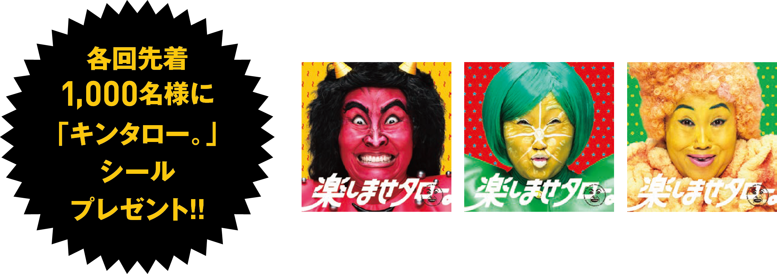 各回先着1,000名様に「キンタロー。」シールプレゼント!!