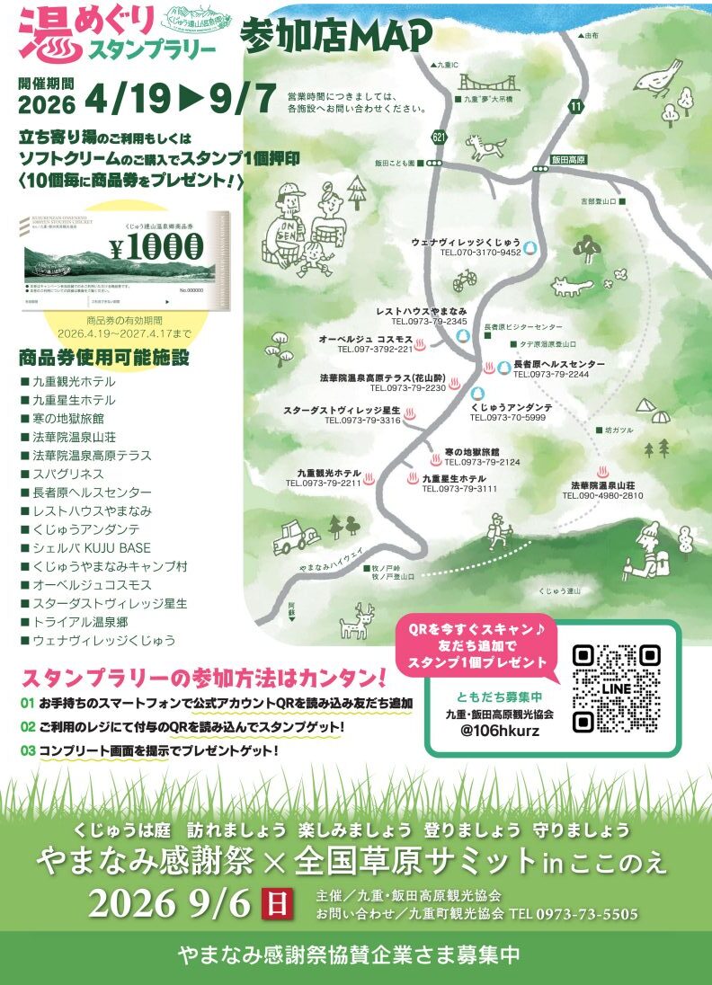 今年も『~くじゅう連山温泉郷~湯めぐりスタンプラリー2026』が始まっています。