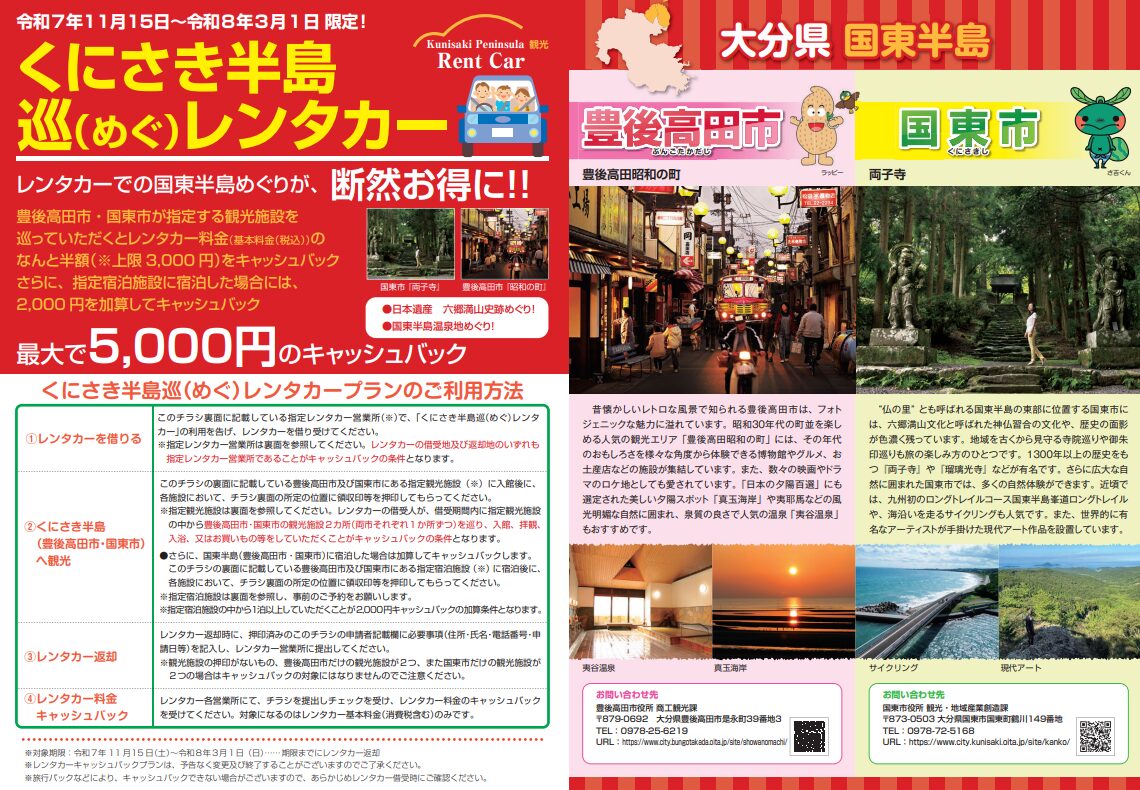 3月1日まで『くにさき半島巡(めぐ)レンタカーでお得に観光!』実施中です。