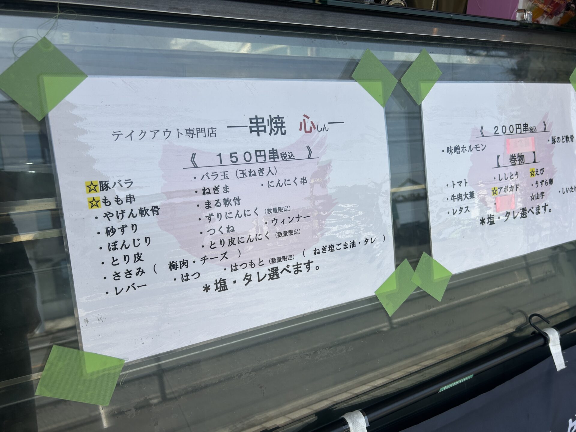 『串焼 心』はテイクアウト専門の串焼き専門店です。