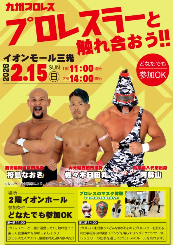 九州プロレス『プロレスラーと触れ合おう!!』が開催されます。