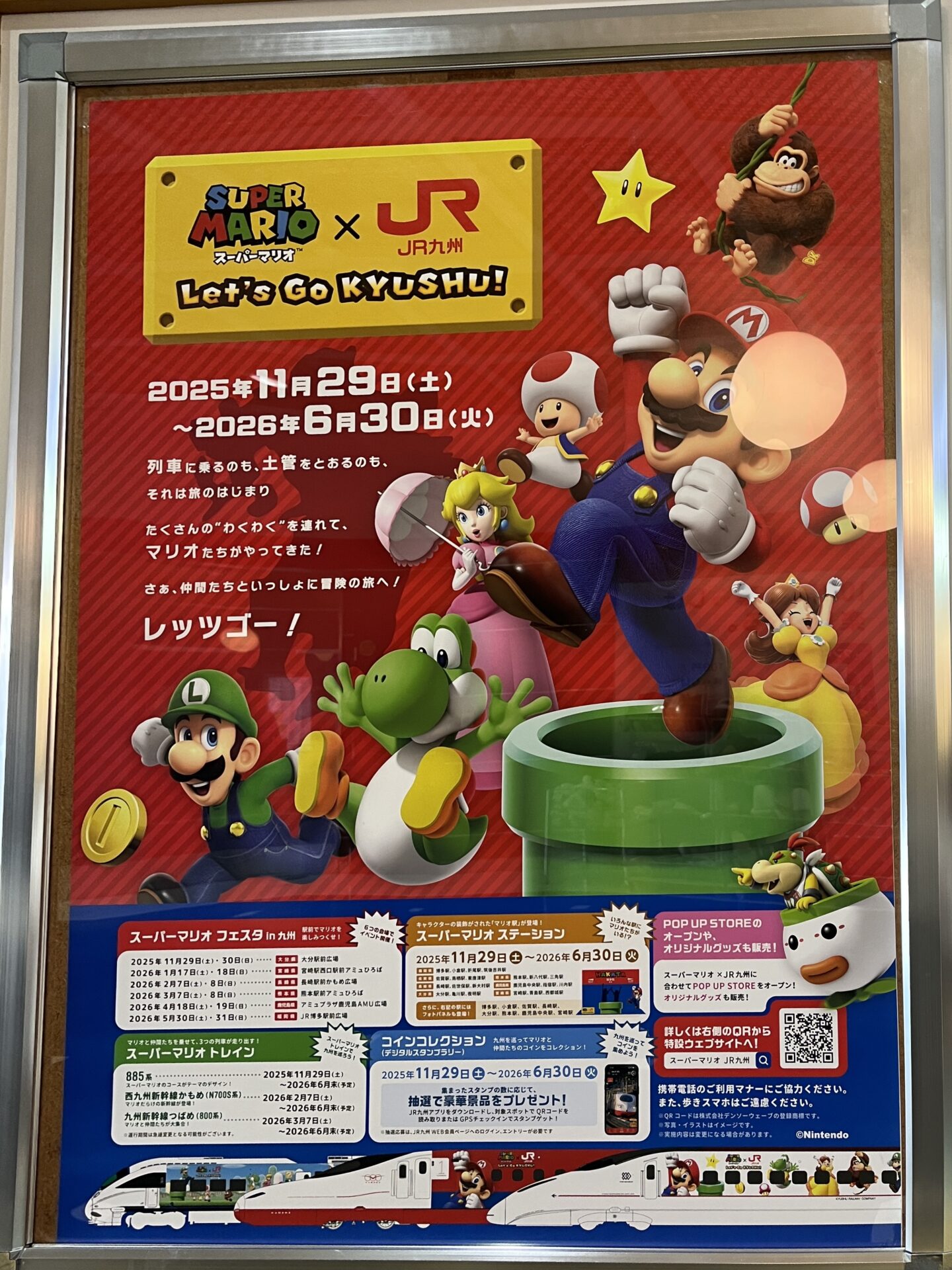 『スーパーマリオ×JR九州 ~Let’s GO KYUSHU!~』が開催されるそうです。