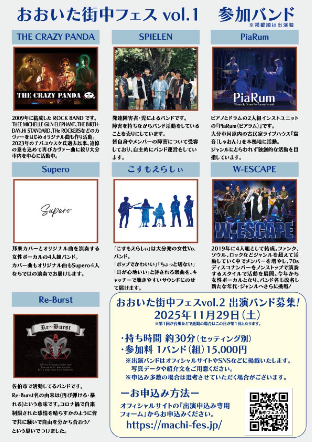 大分のアマチュアバンドが自ら実行委員会を立ち上げ企画立案し「おおいた街中フェス」を大分駅前北口広場で開催します!:出演者…