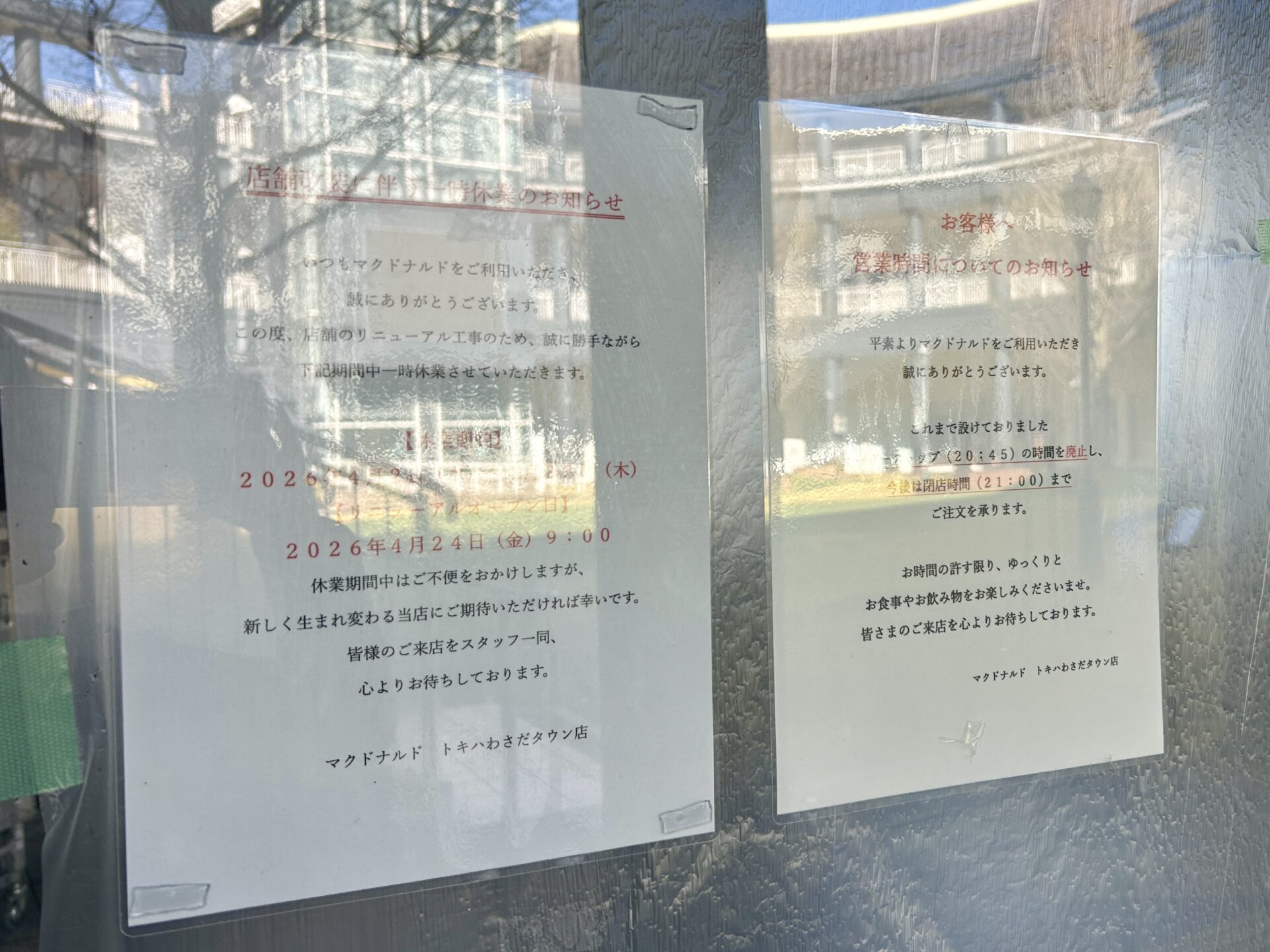 それによると、2026年4月2日(木)〜4月23日(木)の間、店舗リニューアルのため休業するとのこと。