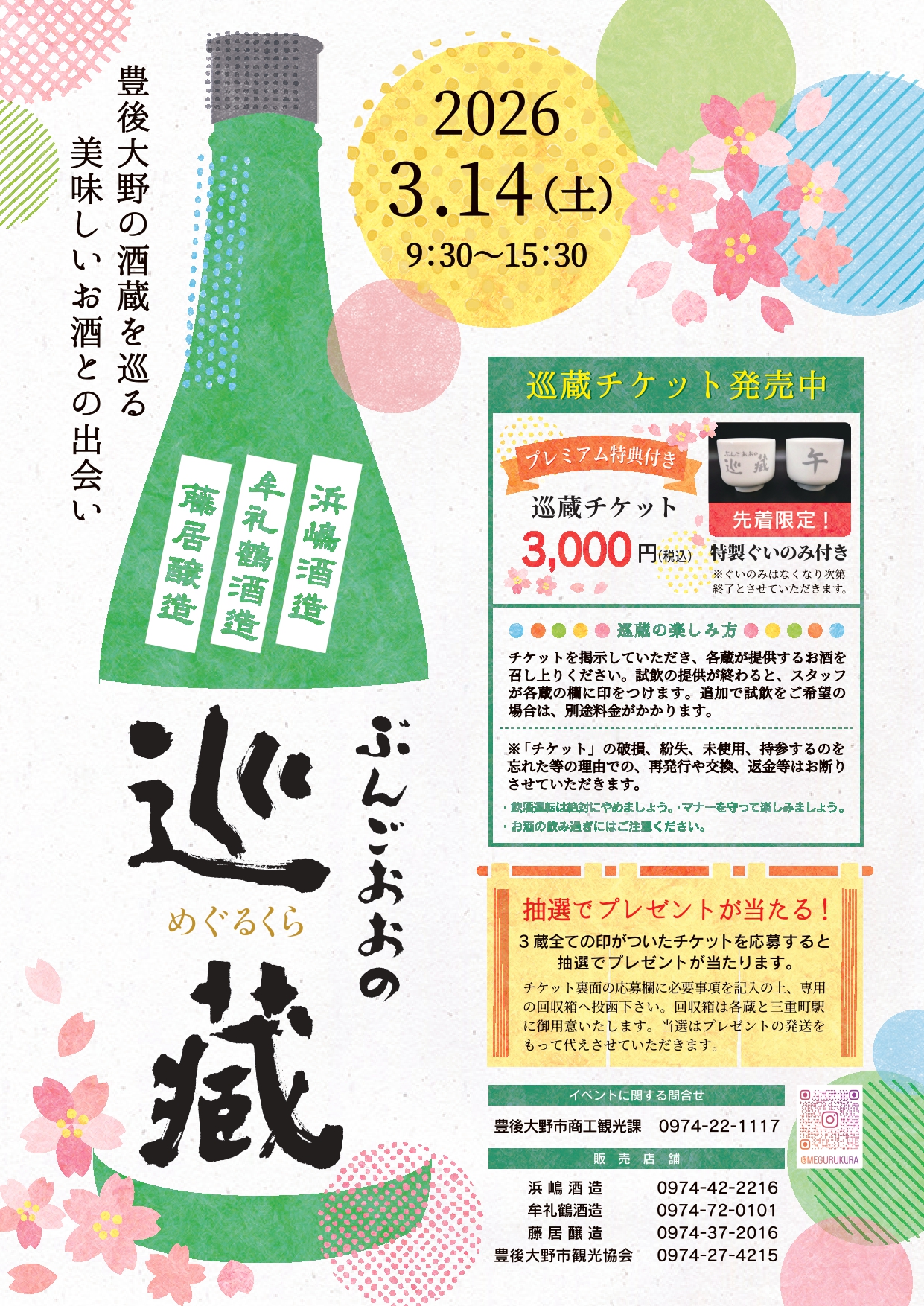 美味しいお酒と出会う、一期一会の旅 今年もこの季節がやってきました。 豊後大野の春を彩るイベント「巡蔵(めぐるく…