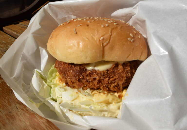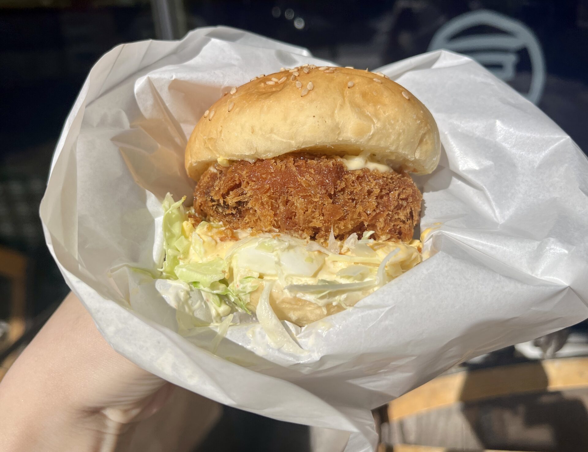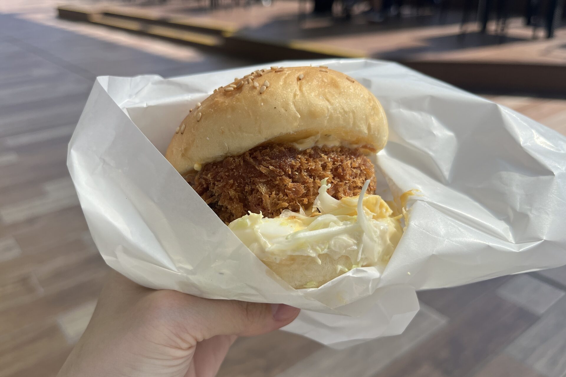 温泉水で蒸したというたまごもサンドされており、まろやかさが加わってより一層リッチな味わいに。香ばしいバンズとの相性も抜群です。