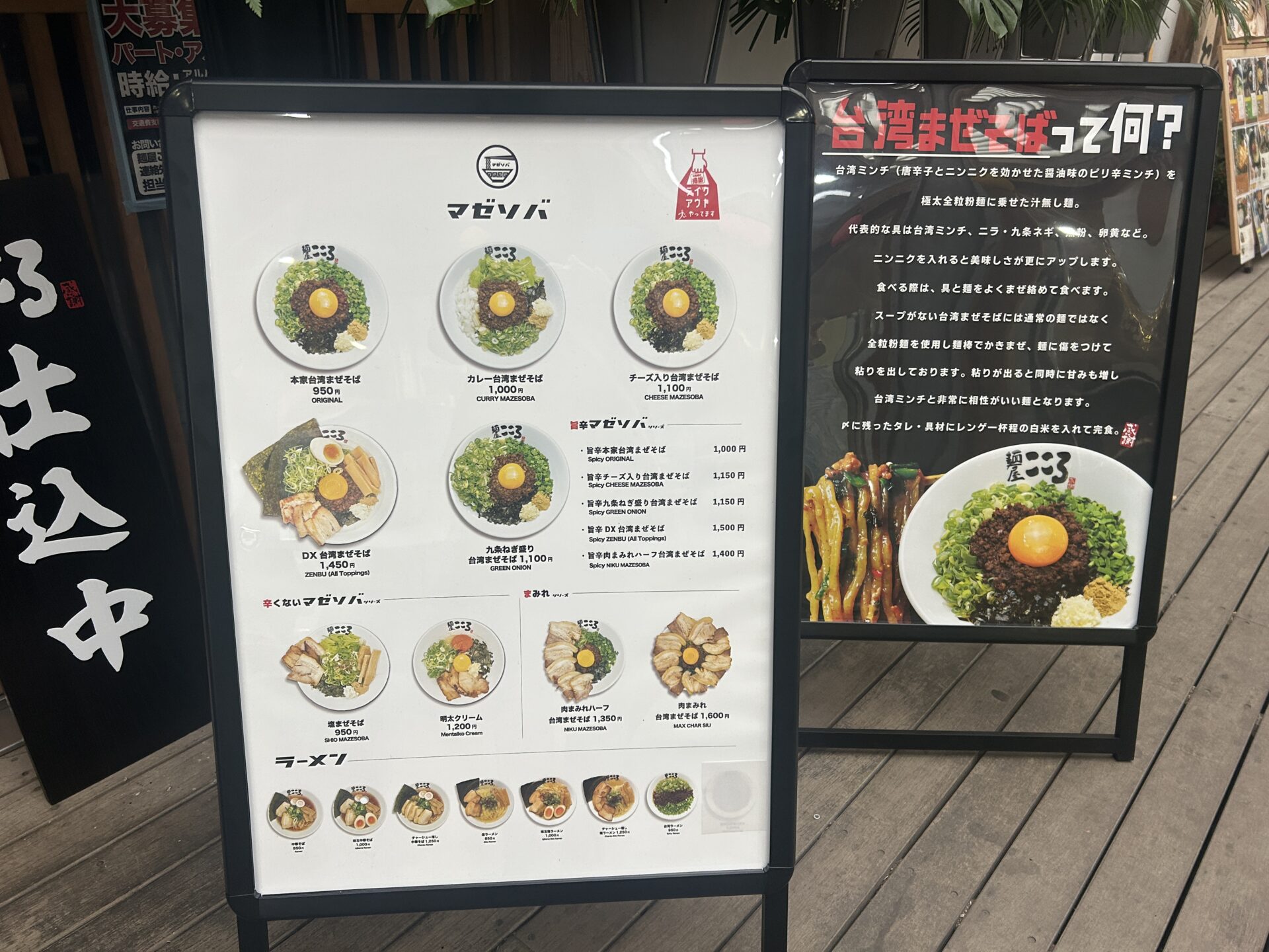 「本家台湾まぜそば」や「カレー台湾まぜそば」など種類も豊富でした。