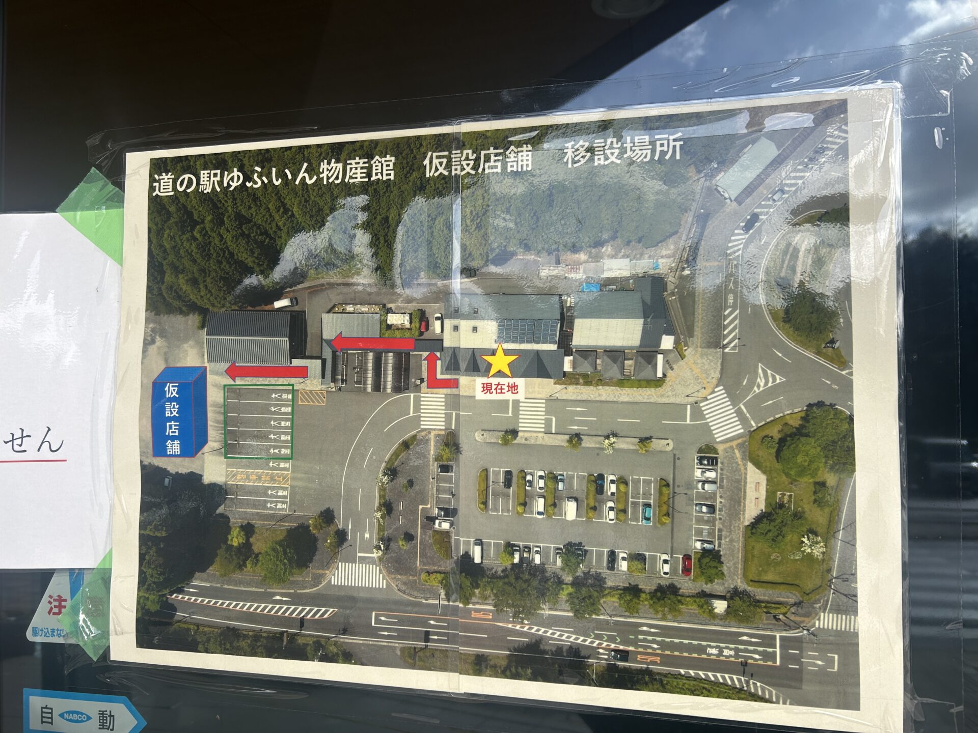 『道の駅ゆふいん』が建て替えのため仮設店舗で縮小営業していました。